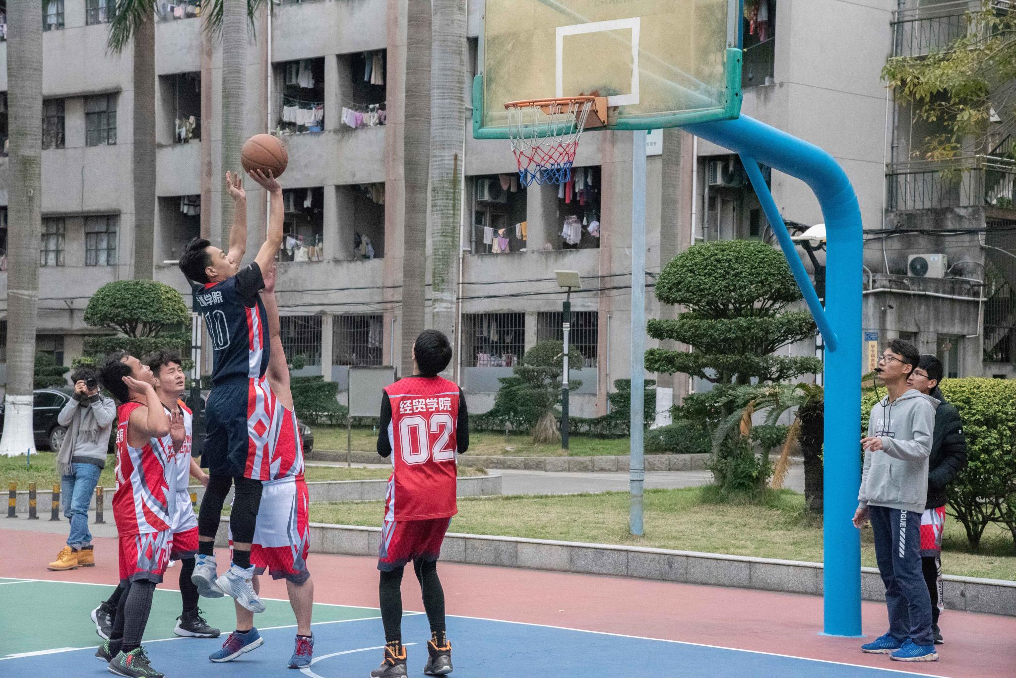 进入决赛的队伍分别是由园艺园林学院和管理学院队员组成的篮球联队(以下简称“艺林-管院队”)与经贸学院篮球队(以下简称“经贸队”)。下午3:10比赛正式开始。上半场第一节,艺林-管院队先发制人,一鼓作气将比分打成16:0,“经贸队”也不甘示弱,在调整状态后,队员加强配合,实现了零的突破。随后,艺林-管院队以20:2的成绩领先。第二节比赛双方队员积极配合,防守、传球、投篮,比赛进入白热化。上半场快结束时,经贸队投进一个精准利落的3分球以紧追分数,但艺林-管院队仍以37:18的领先优势占了上风。