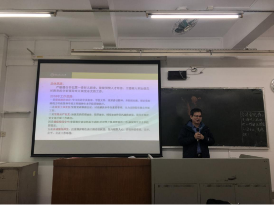 邓勿书记在总结时指出,2018年经过全院师生的共同努力,学院在教学、科研、学生工作、研究生工作、党建工作、群团工作等方面均取得了可圈可点的成绩,在2018年本科教学质量审核评估中表现优异;希望全院教师齐心协力、攻坚克难,在2019年再创佳绩。