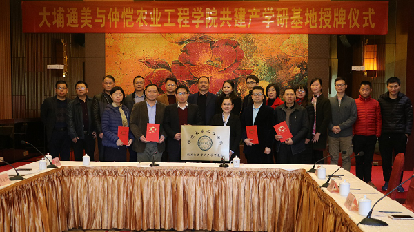 1月25日,我校轻工食品学院与大埔通美有限公司共建产学研基地授牌仪式在梅州大埔县正式举行。我校研究生处白卫东处长、轻工食品学院刘功良副院长、陈海光教授等出席,大埔县政府、县农业、科技、经信、蜜柚协会、大埔县通美实业有限公司等相关单位负责人出席了授牌仪式。