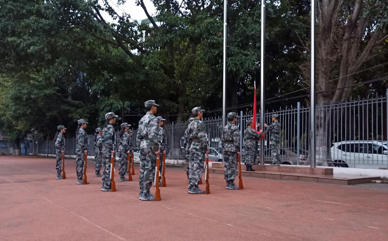 7点整,升旗仪式正式开始。国旗护卫队队员们迈着整齐划一的步伐,将鲜艳的五星红旗护送至升旗台下。伴随着激昂的《义勇军进行曲》,五星红旗冉冉升起,迎风飘扬。仪式结束后,柯锦泉发表国旗下讲话。他引用乡村振兴战略和粤港澳大湾区发展规划,鼓励同学们将所学的专业知识作更深层次的思考,激励同学们树立远大理想,在刻苦奋斗中涵养家国情怀,将个人命运与国家、民族和社会发展融合在一起,勇于承担责任,将行动落到实处,做勇于开拓、奋力拼搏的新时代奋斗者。