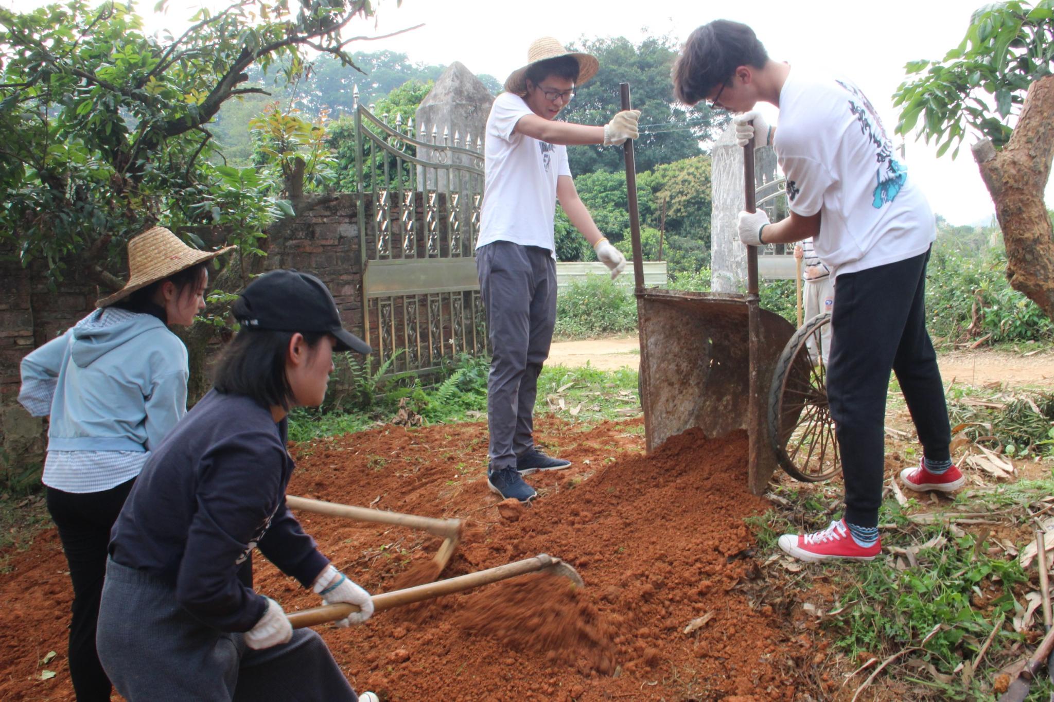 之后林先生带领志愿者参观农场,并讲述今天的志愿活动:填平农场门前的大坑,以防止学员们遇险。志愿者分为两队,一队将农场里多余的泥土运到农场门前对大坑进行填埋,另一队在大坑前将空地的泥土铲平。