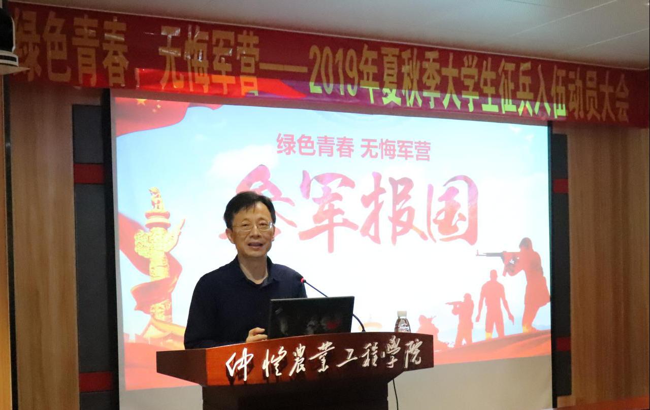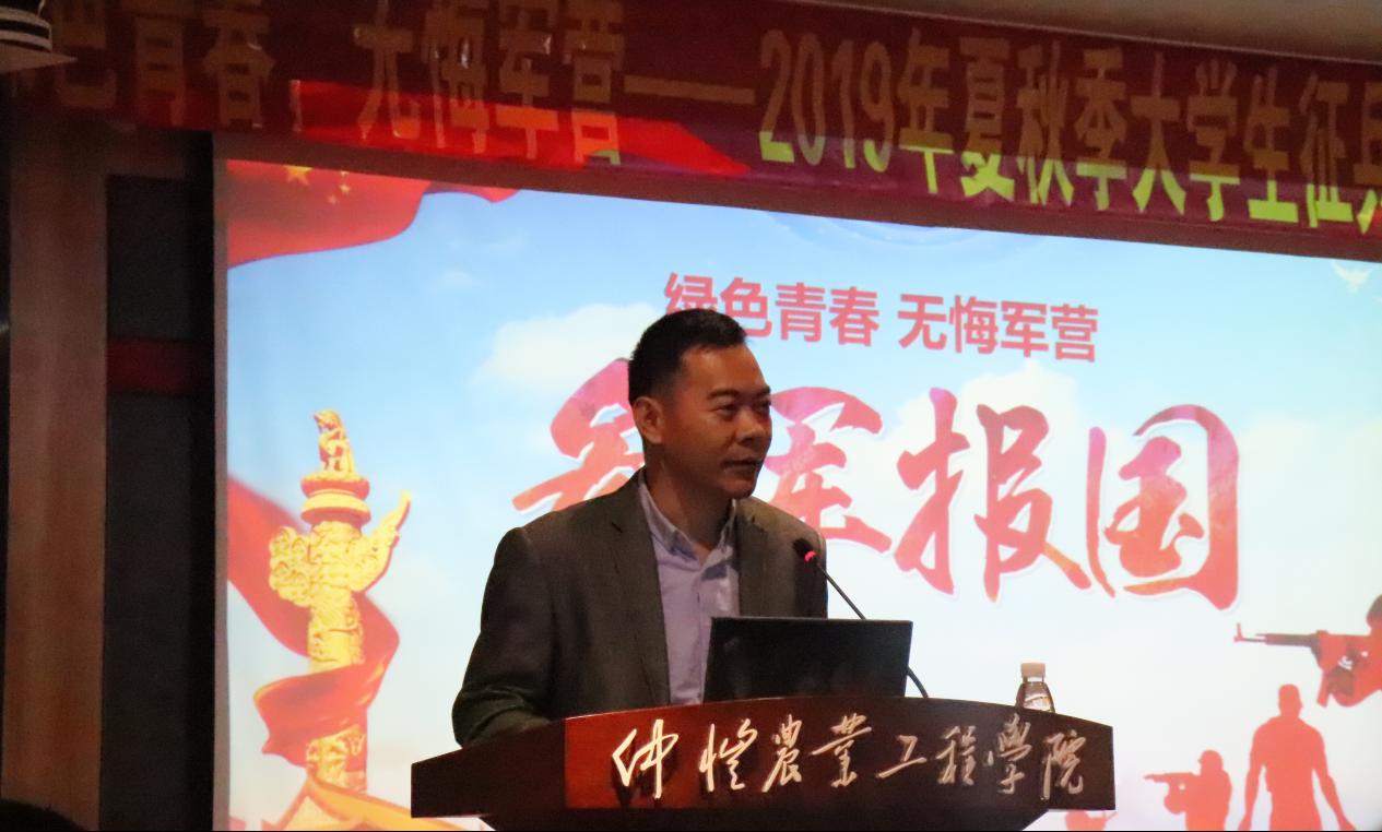 学生工作处(部)李伟东处长做征兵动员讲话,他从报国情怀、抓住机遇、行动起来三个方面做了动员,勉励学生要怀揣国家梦想,将自己的青春梦成才梦融入到国家的强军梦中国梦中去,为实现国家富强贡献自己的力量。