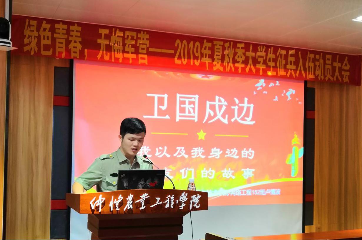 为了贯彻落实国家征兵政策,进一步做好我校2019年大学生应征入伍工作,调动大学生应征入伍积极性。5月9日下午,我校于海珠校区英东楼111室举行了2019年夏秋季大学生征兵入伍动员大会。本次大会由学生工作部(处)、武装部主办,信息科学与技术学院承办,主题为“绿色青春,无悔军营”。出席本次会议的领导有学生工作处(武装部)李伟东处长、昌灯圣副处长、组织部王浩副部长、军事科赵栋科长,海珠校区各学院辅导员和学生代表参加了此次大会,大会还邀请了卢情波等三名退役学生作入伍经历分享,信息科学与技术学院辅导员吴南生主持了本次大会。