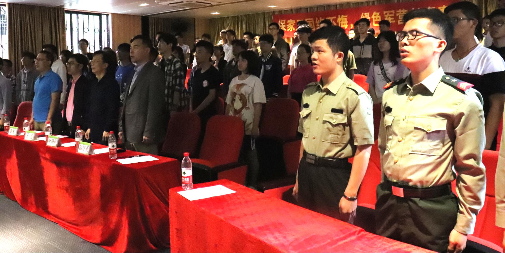 大会开始前,在场的师生观看了学校国旗护卫队的获奖视频,视频播到升国旗奏国歌环节,全程肃立并随着音乐唱起国歌。随后在场师生观看了2019年全国征兵宣传片,并由王浩副部长带领大家学习了《习近平总书记给南开大学8名新入伍大学生的回信》。