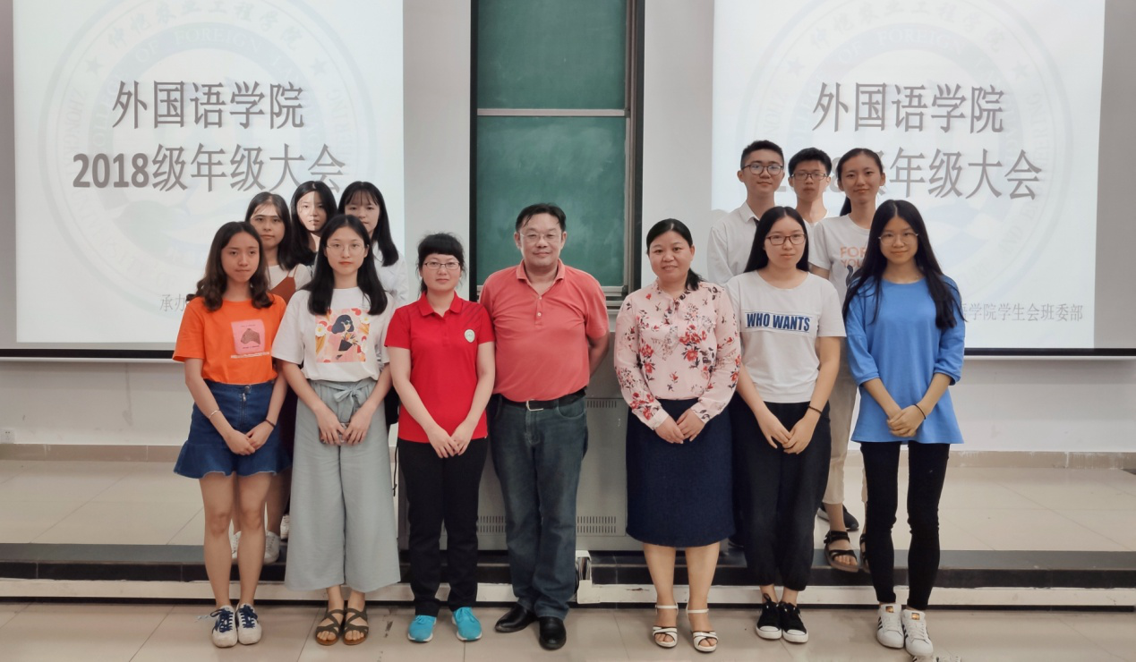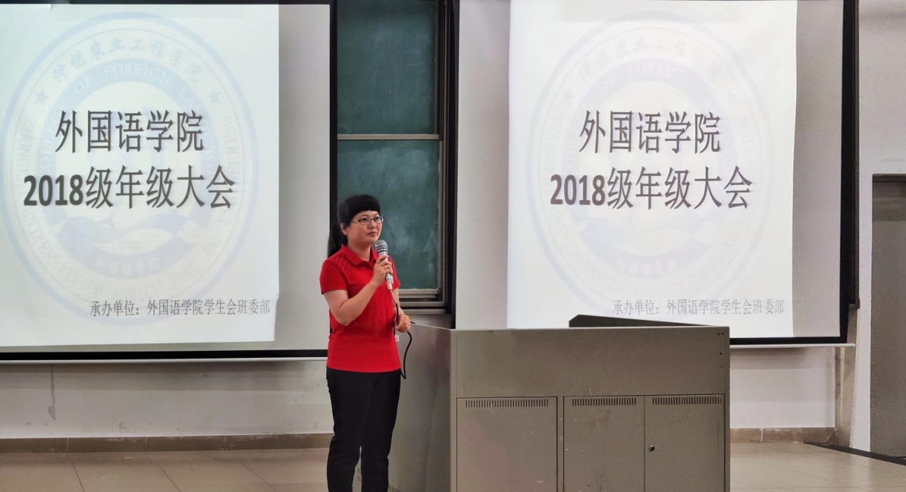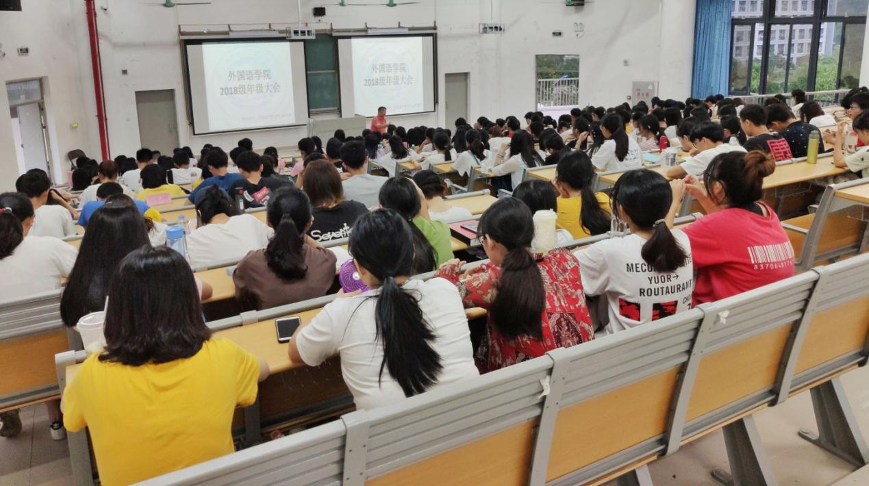 5月21日晚,外国语学院于D2小礼堂召开2018级年级大会。出席本次大会的嘉宾有外国语学院院长李磊教授、外国语学院党总支副书记柴明勤、辅导员周静老师。参加本次大会的是外国语学院2018级全体学生,会议由周静老师主持。