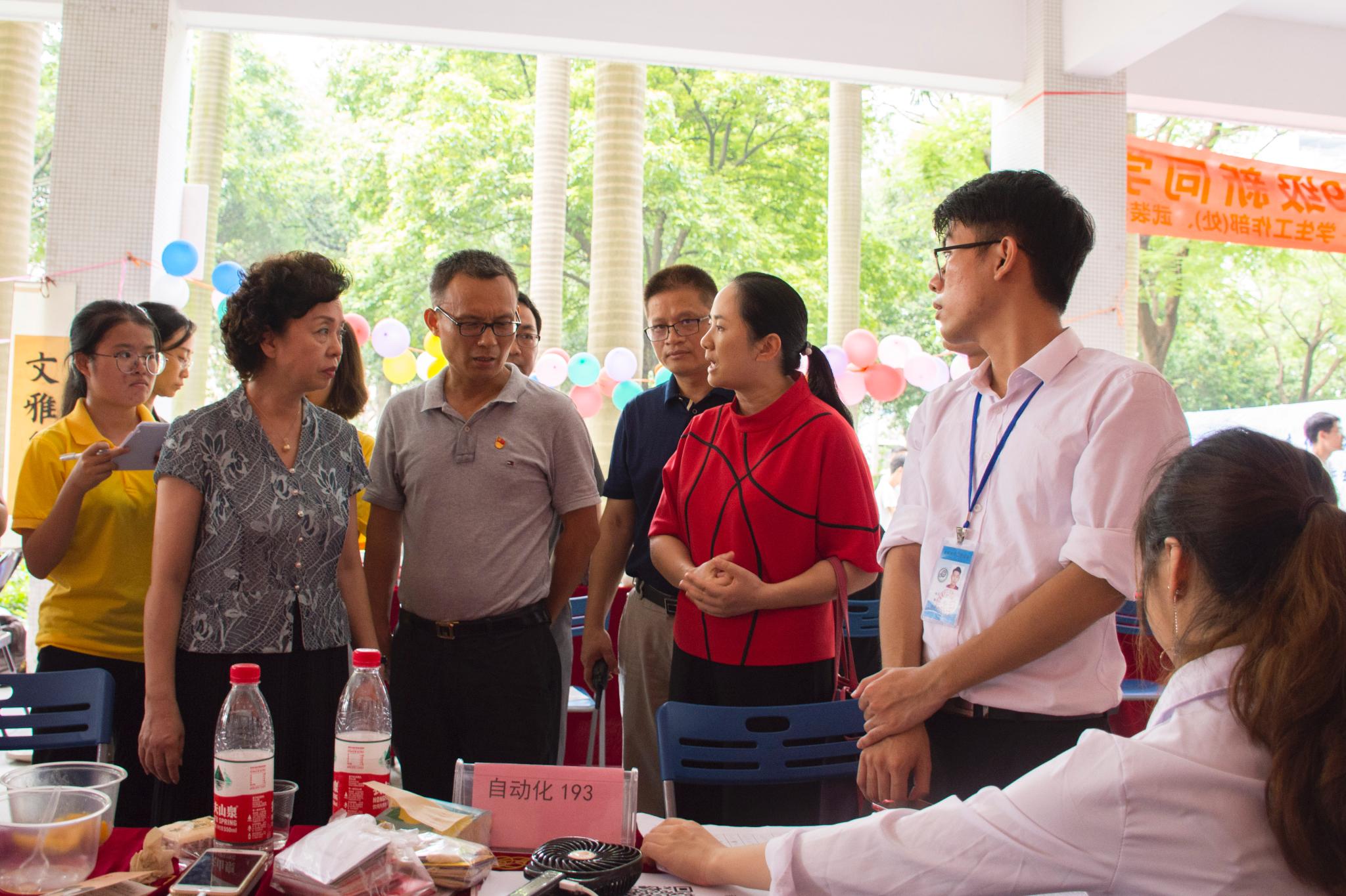 助理班主任与志愿者热情的服务,让每一位刚踏入大学校园的新生们感到了自动化学院特有的温暖。与此同时为了确保迎新活动安全、顺利的开展,自动化学院院长王克强、党总支副书记黄毅及辅导员张弦老师和袁萌老师来到新生报到处了解情况,积极开展迎新工作,重点关注新生报到的效率,指导学生干部以及志愿者做好工作,服务新生,迎新工作有条不紊地进行。下午,仲恺农业工程学院党委书记宋垚臻、校长程萍、副校长张文峰等校领导都到自动化学院新生报到处视察工作,对自动化学院所做的工作给予肯定。学校领导对我院师生们的关怀肯定了我们的工作成效,同时激励着我们更有信心做好上级交代的任务。