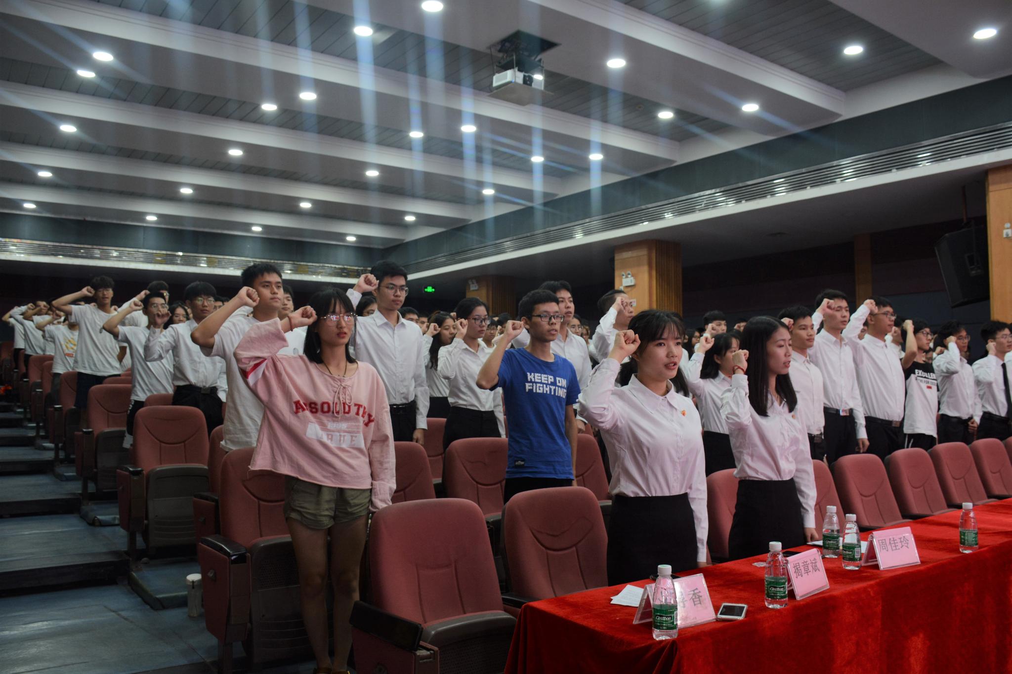 紧接着,大会为新一届的团委学生会书记团、主席团以及部长团颁发就任聘书。团委第二副书记揭章斌作为代表带领全体学生干部进行宣誓。