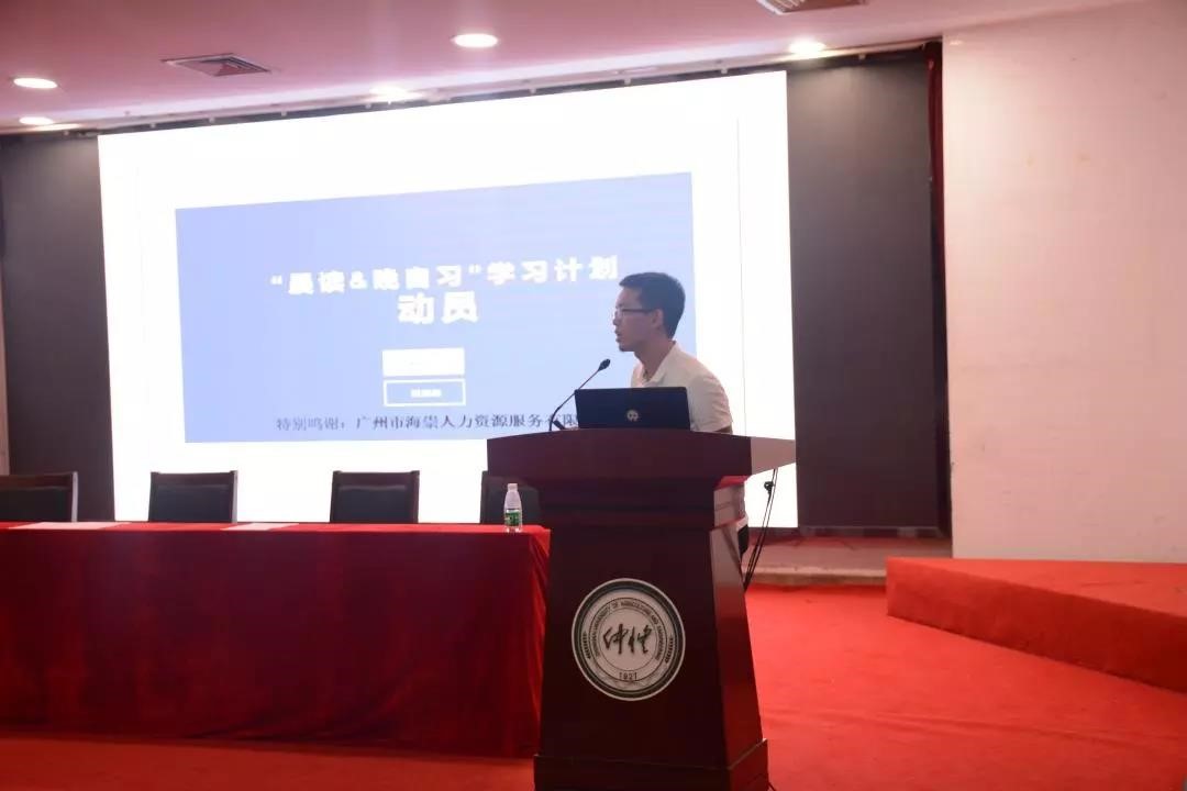 19级辅导员田旭峰则向大家详细介绍了信息科学与技术学院晨读晚自修活动,动员学院所有人积极参与到活动中来,在坚持中学会自我规划和自我管理。会上还表彰了上一学年晨读晚自修活动的积极份子,并颁发了奖状和奖品。