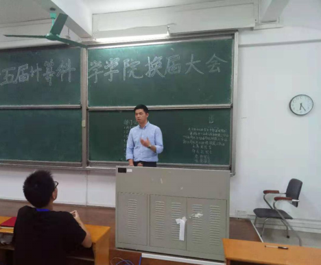 计算科学学院学生会主席团发言。院学生会主席叶佩贤同学强调了院学生会的纪律,希望主席团成员做好模范带头作用,各部门部长也要做好表率,协调好学习与工作的关系,要更加重视工作中的细节,各个部门之间也要团结合作、和睦相处。