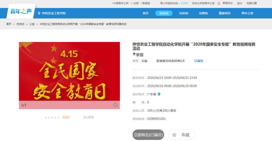 新冠疫情防控期间,为了进一步帮助广大师生认清国家安全形势,提升师生国家安全意识,2020年4月15日开始,自动化学院组织全体师生通过中国大学生在线、易班、国家开发大学网站、自动化学院青年之声、微信群等渠道宣传观看由教育部录制的国家安全教育日高校公开课(链接:http://huodong.xueanquan.com/2020gdgjaq/shipin.html)。参加公开课的人员有自动化学院全体教师和学生党员在内的全体学生。