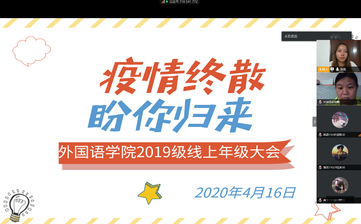 至此,外国语学院2019级第一次线上年级大会圆满结束。