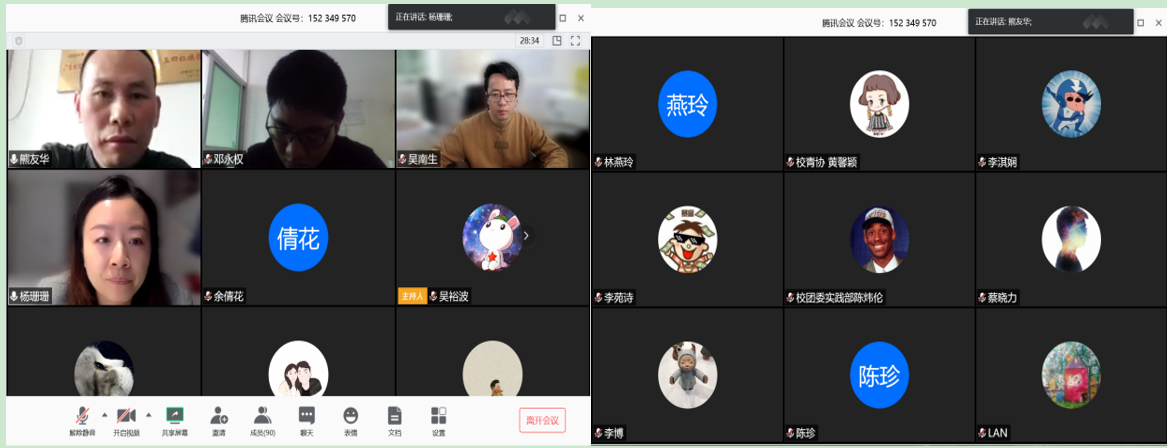 4月15日上午,校团委召开学习习近平总书记中央政治局常委会会议上的重要讲话精神暨共青团工作部署“云”会议。校团委全体老师,学院团委、研究生团委书记,留鄂学生临时(网络)团支部书记,主要学生干部共91人参会,团委书记熊友华主持会议。