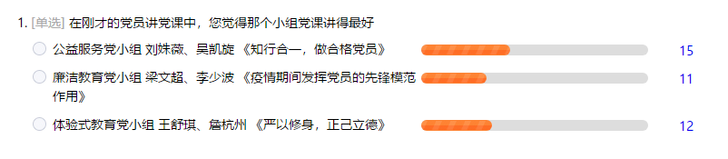 党员讲党课比赛活动活动形式新颖,能真正做到以赛促学的目的,能让学生牢固树立学习意识;活动组织到位,覆盖面广,参与率高,能做到全员动员、全员参加,而且活动气氛很热烈,大家都能积极抢答,积极讨论;活动效果良好,每组党员都能认真对待,备课充分,能有效做到以学促学,以学带学,实现了党员自觉学、带头学。