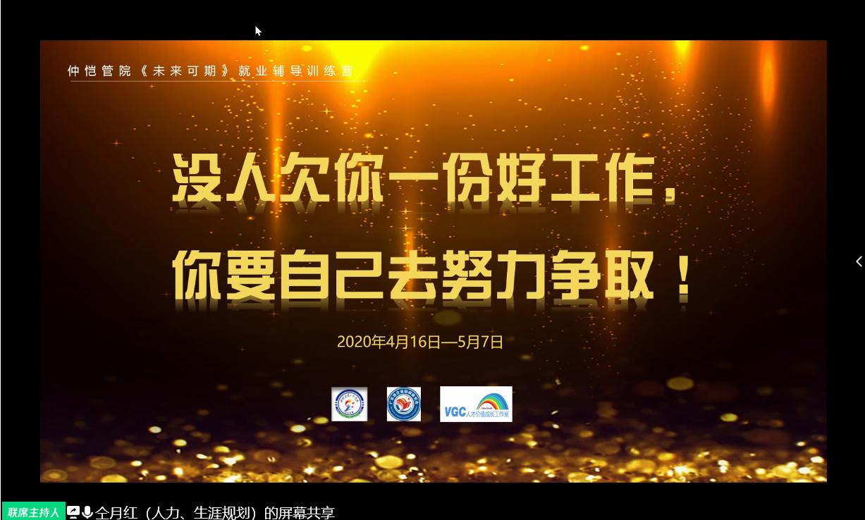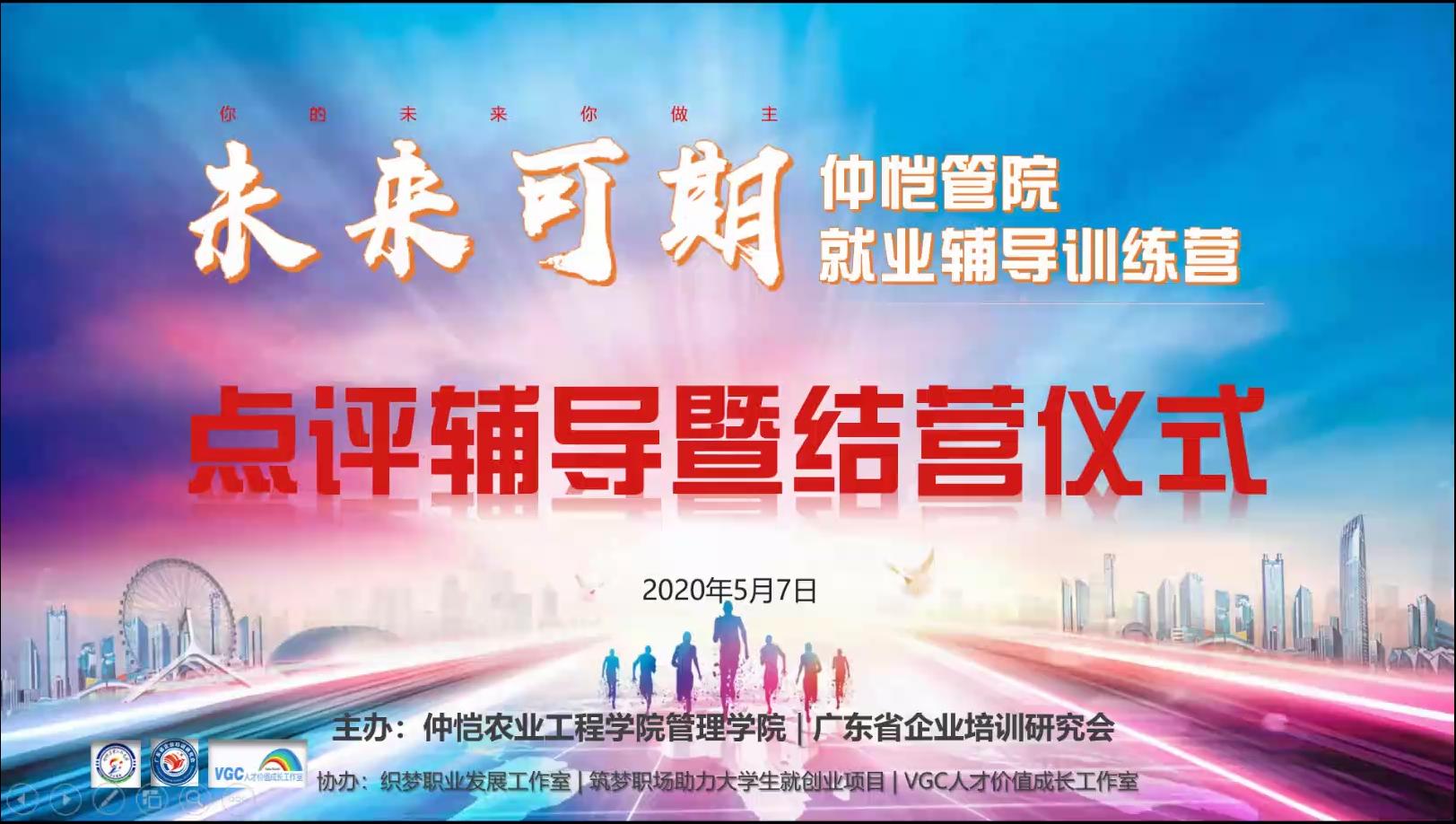 5月7日晚8点,仲恺农业工程学院管理学院与广东省企业培训研究会联合开展的“未来可期”线上就业辅导训练营正式结营。本次结营仪式由训练营导师仝月红主持,训练营全体导师及学员参与了本次仪式。