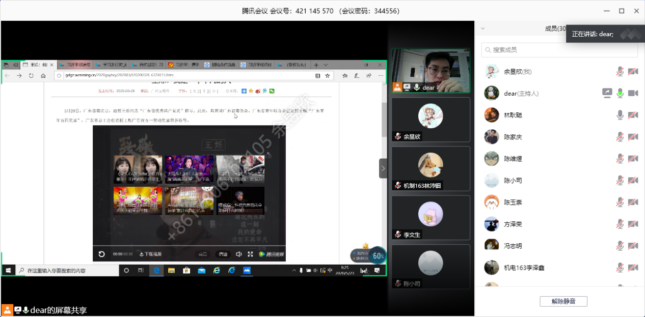为深入学习习近平总书记关于统筹推进疫情防控和经济社会发展工作系列重要讲话精神以及学习王烁同志先进事迹,5月23日上午,机电工程学院创新创业学生党支部于腾讯会议平台召开先进事迹学习座谈会,支部书记熊伟老师以及支部全体党员参加会议,会议由熊伟老师主持。