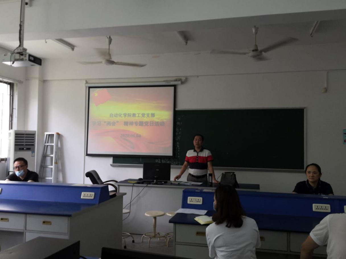 6月4日,自动化学院教工党支部在英东楼319开展以学习两会精神为主题的党日活动。活动由自动化学院教工党支部书记张小花主持,自动化学院教工党支部全体党员参加活动。