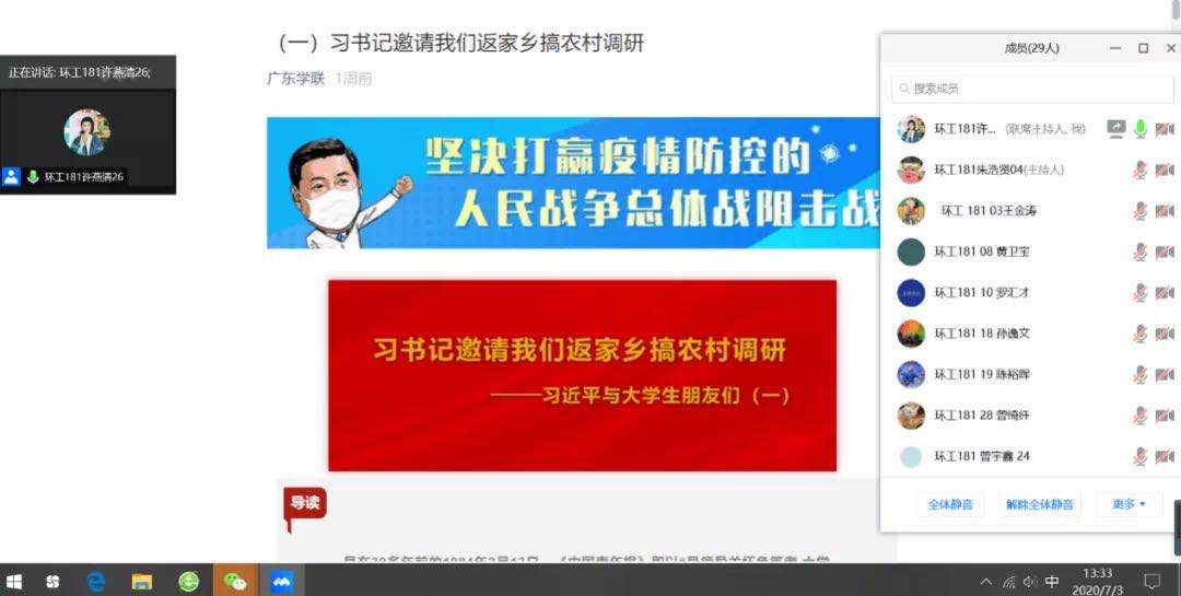 为进一步深入贯彻落实习近平总书记关于青年工作的重要思想,深入实施“灯塔工程”广东大学生思想引领行动,做深做实“青年大学习”,资源与环境学院组织团委学生会各部门、各班团支部开展关于《习近平与大学生朋友们》系列文章的云端学习。
