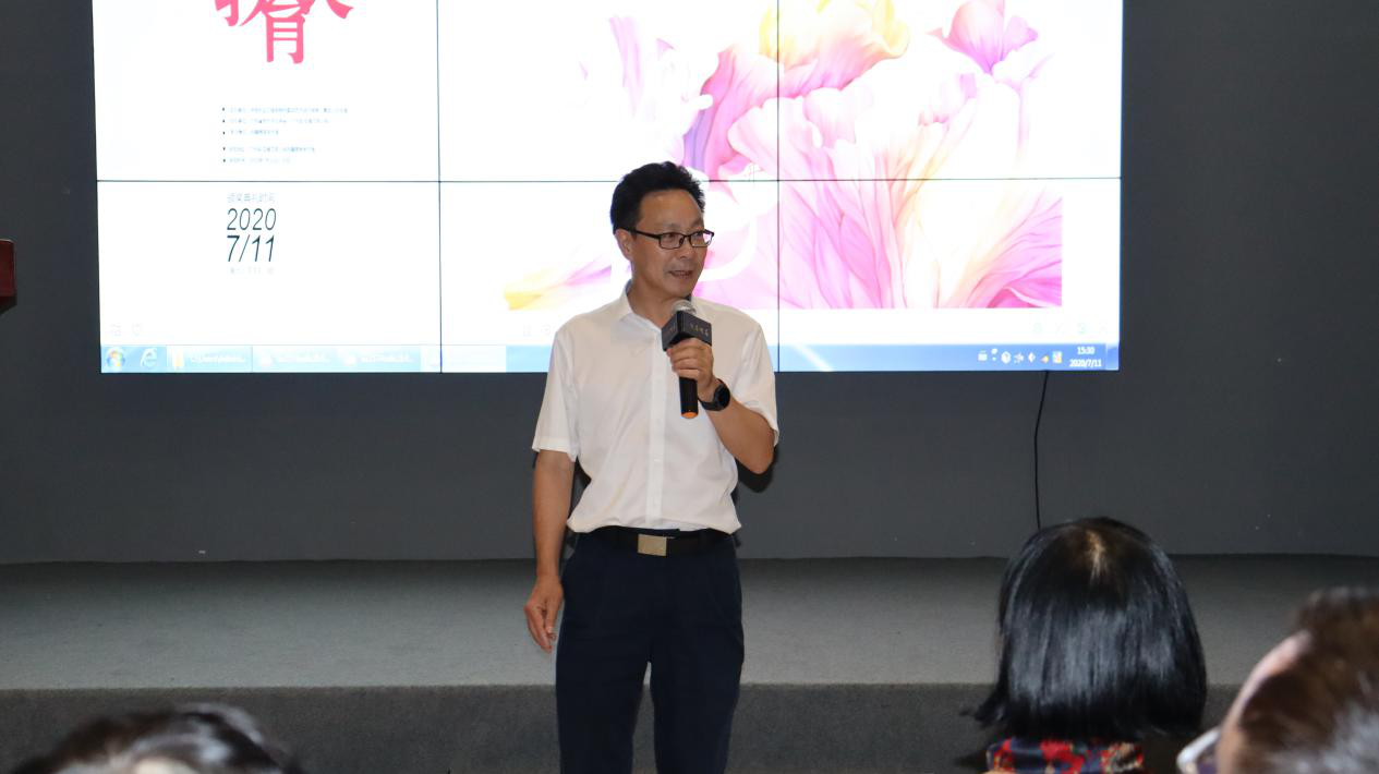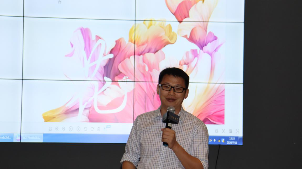 田允波教授致欢迎辞。他对参加本次活动的来宾表示热烈的欢迎和衷心的感谢,并对学院师生在毕业设计期间的辛勤工作给予高度评价,这次展览的顺利举办,也说明学校办学水平及社会影响力正在不断提升。今后学校会继续秉承香凝先生的办学思想与理念,为建设新时代特色鲜明高水平应用型大学而努力奋斗。
