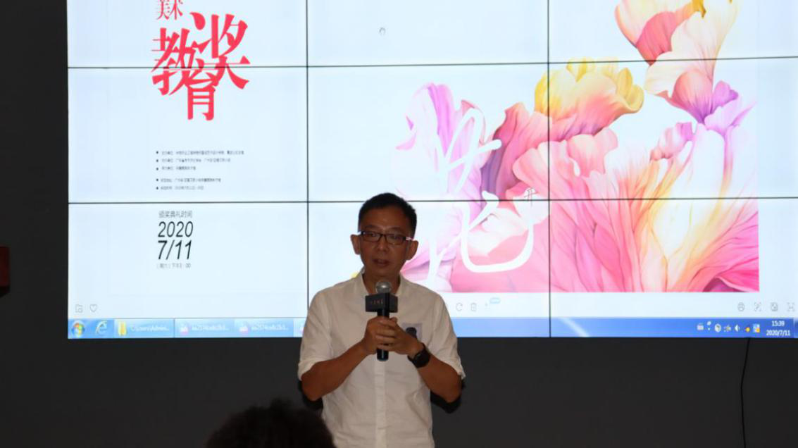 何香凝艺术设计学院党总支书记邓慧琳宣读何香凝艺术设计学院2020年获高剑父美术教育奖的表彰决定。随后,学校领导与嘉宾代表分别为获奖师生颁奖。