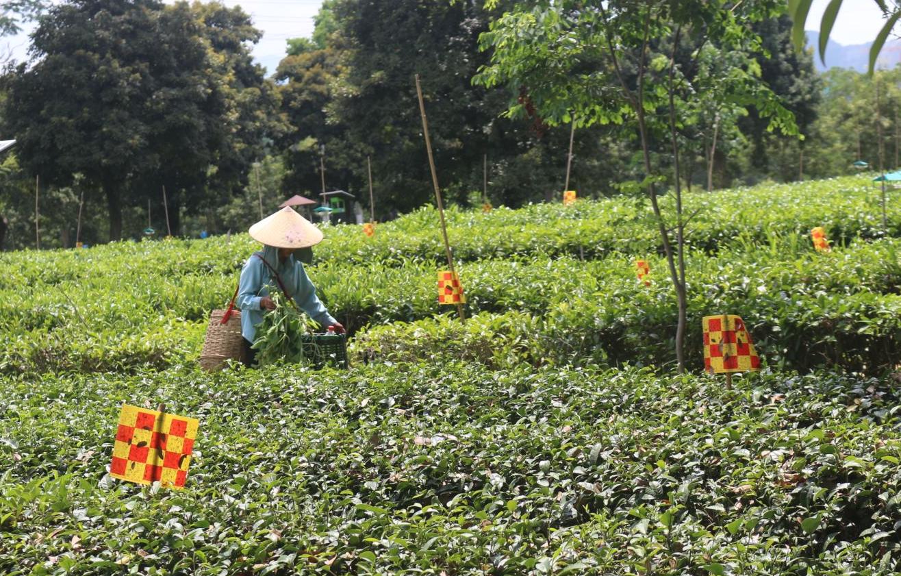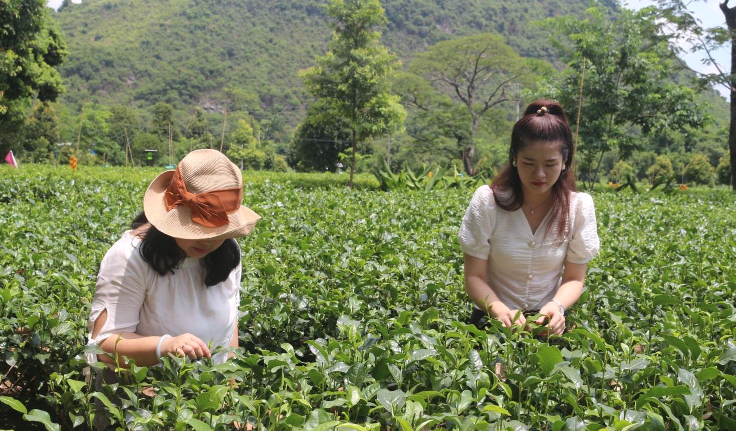 最后一站来到基地的茶田,冯书记与团队师生深入下地体验采摘茶叶,并与茶农进行友好交流。
