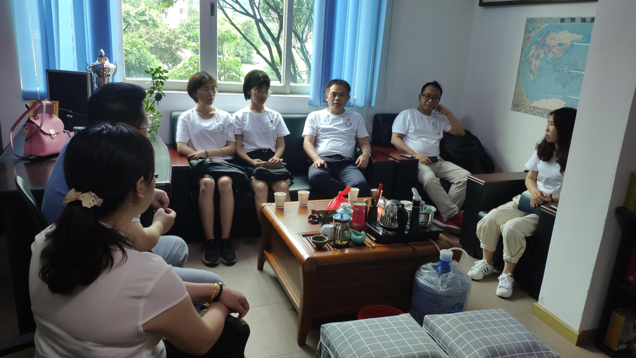 在参观完北伐战争纪念馆之后,团队成员在李娜老师的带领下来到韶关市大众教育培训学校开展乡村人才振兴服务实践。作为华南教育培训基地的大众教育培训学校与仲恺农业工程学院合作办学已十几年,一幅“仲恺大众情”的书法作品便传递了仲恺与大众教育的源远流长。在与蔡毅峰总经理和陈文霞校长的洽谈中,我们了解到大众教育以及当地政府对人才的渴求,他们希望仲恺的学生能来这里实习,我们团队也表示希望将此纳入到未来工作的计划中,为韶关人才振兴提供切实的帮助。蔡立彬院长也对大众教育的培训模式提出了自己的见解,希望大众教育能够借鉴国内外先进的培训学校的办学经验,依托红色文化资源,提升自身办学水平。
