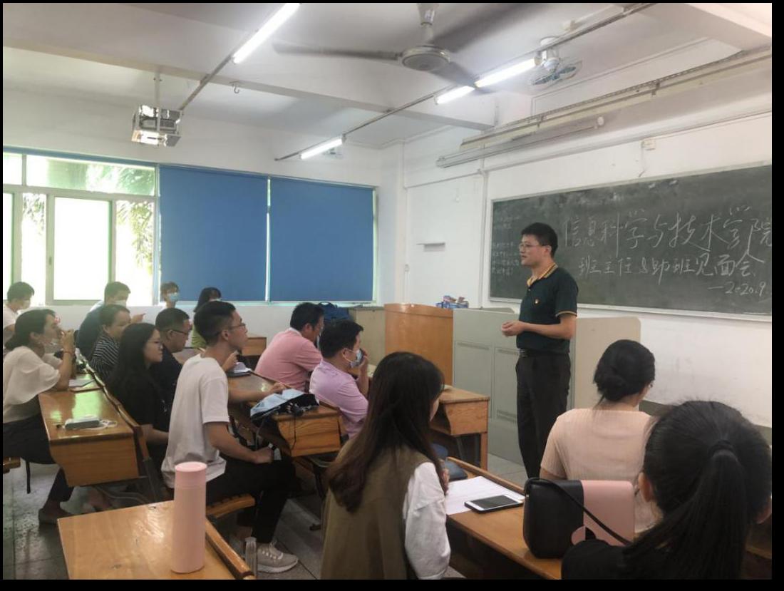 争做仲园育人先锋队,信科班助携手共迎新。9月25日下午,信息科学与技术学院举办了2020级新生班主任、助班见面会。该院党总支副书记史孔仕,新生班主任及辅导员、新生助班参加本次见面会,会议由辅导员邓艳桃主持。