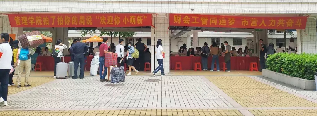 本学期管理学院2020级新生进驻白云校区,迎新工作面临较大挑战。为克服重重困难,本次迎新准备工作历时接近一个月,学院高度重视、统一布置,各部门密切配合、通力协作,使得新生接待工作快速、安全、有序的进行。温馨的校园环境、志愿者们的热情服务、快捷方便的绿色通道、助班们的悉心帮助,让新生们即使远离了家乡,也感受到了家的温暖。同时,在管院迎新报到处露天空地的宣传栏上,分别张贴了管理学院的发展历程、师资力量、特色活动等内容的展示板,以便让新生和家长们可以更快更好的了解管理学院。