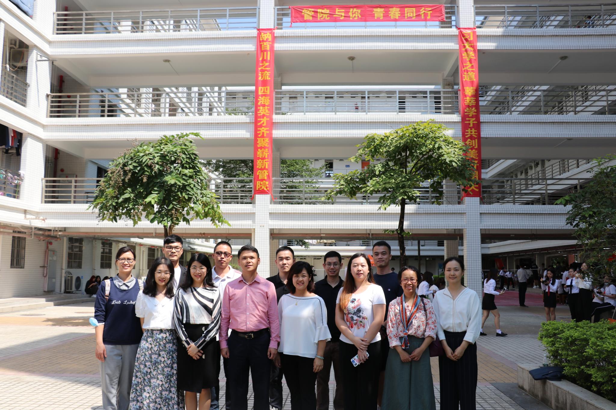 管理学院党总支书记柯锦泉,副院长邓保国,党总支副书记江丽带领管理学院全体辅导员坐镇迎新现场,指导迎新工作开展,对远道而来的新生与家长表示热烈欢迎。