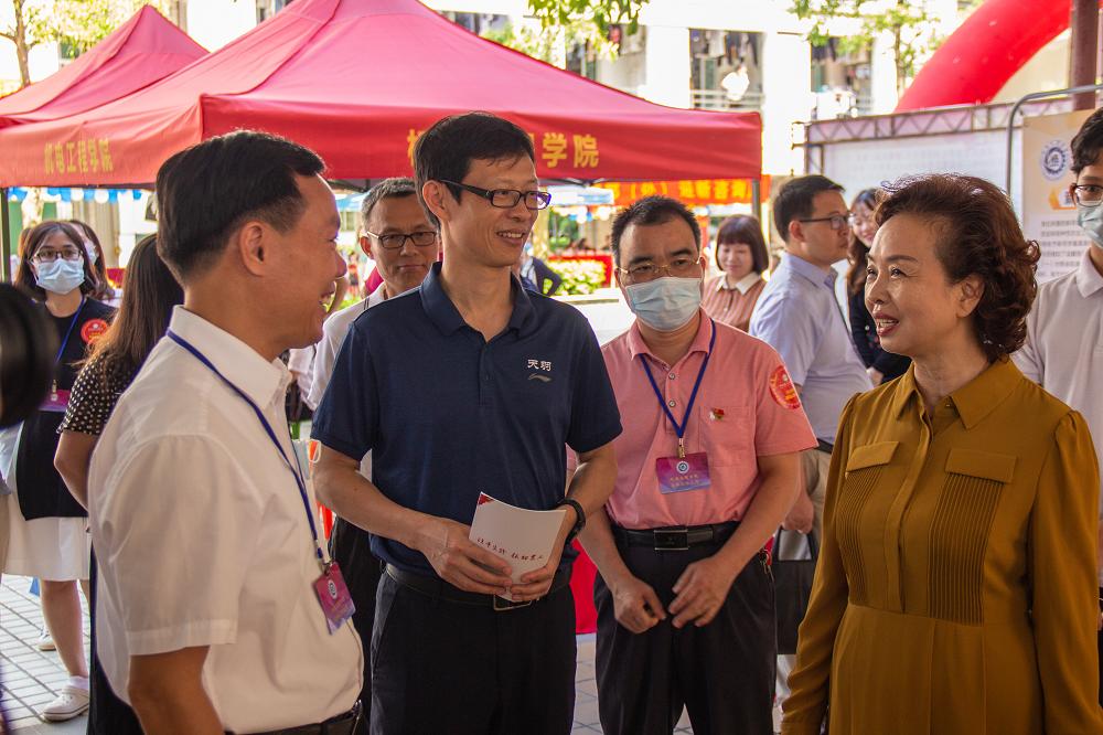 上午,学校校长程萍,党委副书记邱亚洪,副校长朱立学,副校长张文峰在学生处有关领导陪同下来到学院新生报到现场,详细了解迎新工作及新生报到情况,并深入与新生及其家长交谈,了解学生衣食住行安排情况,鼓励大家好好学习,成长成才。同时,校领导还逐一询问了各班新生报到情况,慰问迎新一线工作人员和学生志愿者,对他们的辛勤工作表示肯定。