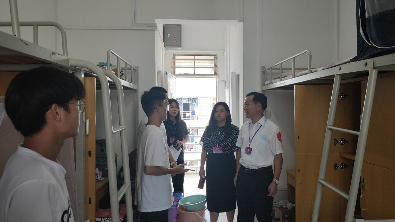 下午,学院党政班子成员,新生班主任,辅导员,学生干部前往学生公寓看望新生,学院领导亲切问候到校新生,询问宿舍生活细节。走访期间,张平湖书记寄语新生并表达了学院的期望:一是要积极做好疫情防控工作,坚持每日测温“晨午晚”上报,饭堂就餐鼓励自带餐具;二是要尽快适应大学生活,养成良好的学习和生活习惯,在大学学习期间确立新的奋斗目标,合理规划,刻苦学习,争取学有所成,尽快实现高中到大学的转变,成功开启新的人生旅程;三是要丰富自己的大学生活,积极响应国家“三走”活动的号召,走下网络,走出宿舍,走向操场,激发参加体育锻炼的主观能动性、形成良好的体育锻炼习惯、提升身体素质,并从中磨炼坚强意志、培养健康体魄和拼搏精神。