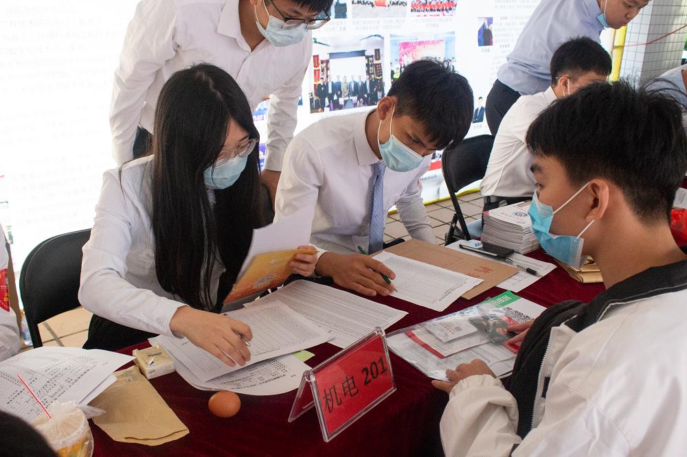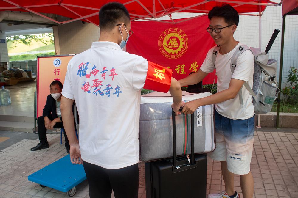 为确保疫情防控常态化背景下迎新工作高效有序开展,我院此次迎新工作始终以安全、有序、精准为原则,推出多项迎新举措。一是充分利用“问卷星”,微信等网络平台,实行新生健康信息“日报告”、新生疫情情况“零报告”,保证对每位新生健康状况及时掌握,切实关怀;二是学院组织招募数百名志愿者对新生提供全程式、多站式“一对一”“多对一”志愿服务,在每个服务点配备专人负责,确保新生在每个地方每个环节都有专人接待指引;三是严格落实疫情防控工作要求,在新生报道处合理设置安全等候区,保持每个同学之间安全距离,缓解学生报到排长队的聚集现象,使得整个报到现场秩序井然。