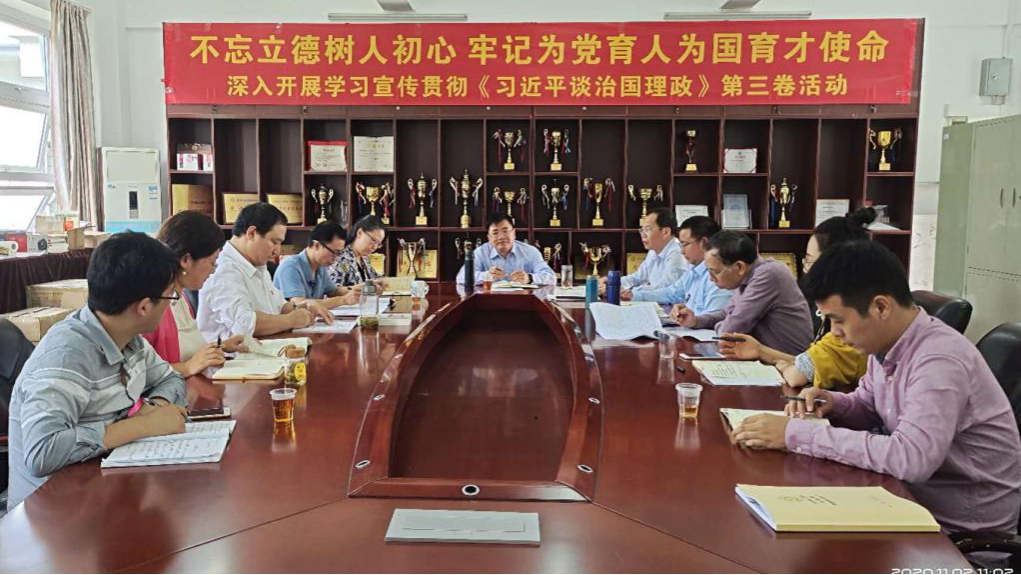 会上,该院党总支副书记李汉雄以《践行“以人民为中心”思想,牢记为党育人为国育才使命》为题分享了自己学习《习近平谈治国理政》第三卷的心得和体会,与会人员分别作了交流发言。随后,廖起彬传达了学校有关文件精神,与大家一起学习了习近平总书记出席深圳经济特区建立40周年庆祝大会和视察广东重要讲话、重要指示精神以及广东省学习贯彻会议精神,强调要提高政治站位,增强学习宣传贯彻的思想自觉、政治自觉和行动自觉,联系实际工作,全力推动、服务学校和学院各项改革发展任务。