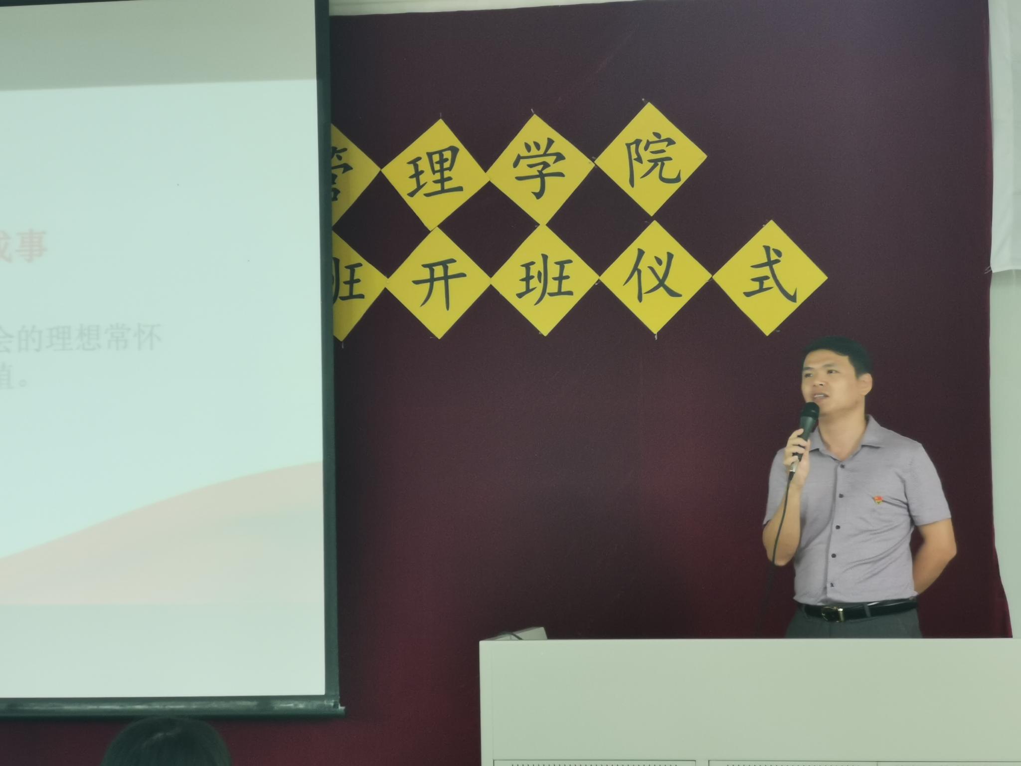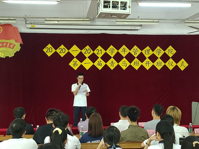 10月31号下午,管理学院第一期“青马工程”培训班于教学楼B501隆重开班。管理学院党总支书记柯锦泉,党总支副书记江丽,团委书记、2019级辅导员张现超,2018级辅导员叶韬、梁禹,以及管理学院六大组织学生干部代表参加了开班仪式。本期“青马班”培训班的主题是:主动担当作为,不负时代使命。