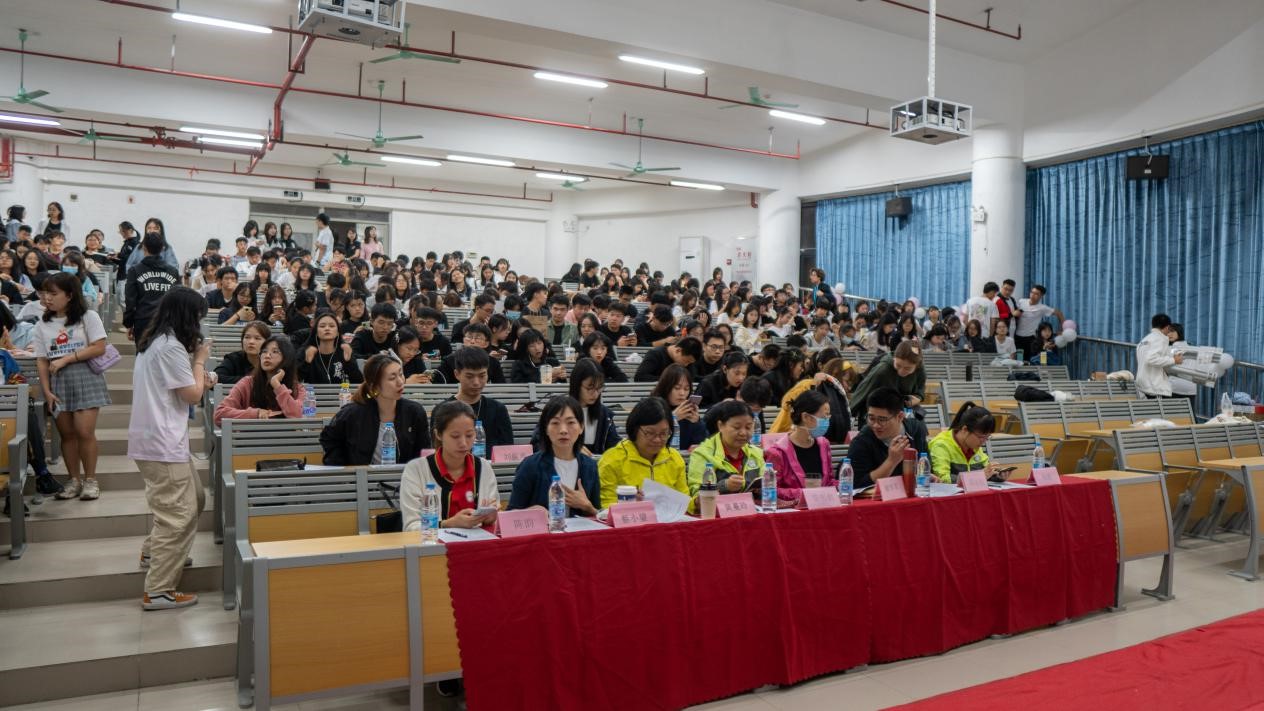 等待比赛结果期间设立的游戏环节让现场气氛推向高潮。随后,党总支副书记柴明勤对本次大赛作点评。她表示,班服作为一种集体服装,能让同学们对集体有一种认同感和自豪感,为集体荣誉而奋斗。班服设计能够很好体现同学们的创造力以及团结合作的能力,其不仅可以增强班级凝聚力,还可以增进同学间的相互理解与信任。希望同学们团结友爱,积极拼搏,为班服增添光彩,使之成为自己最美好的青春回忆。