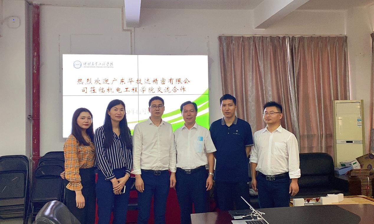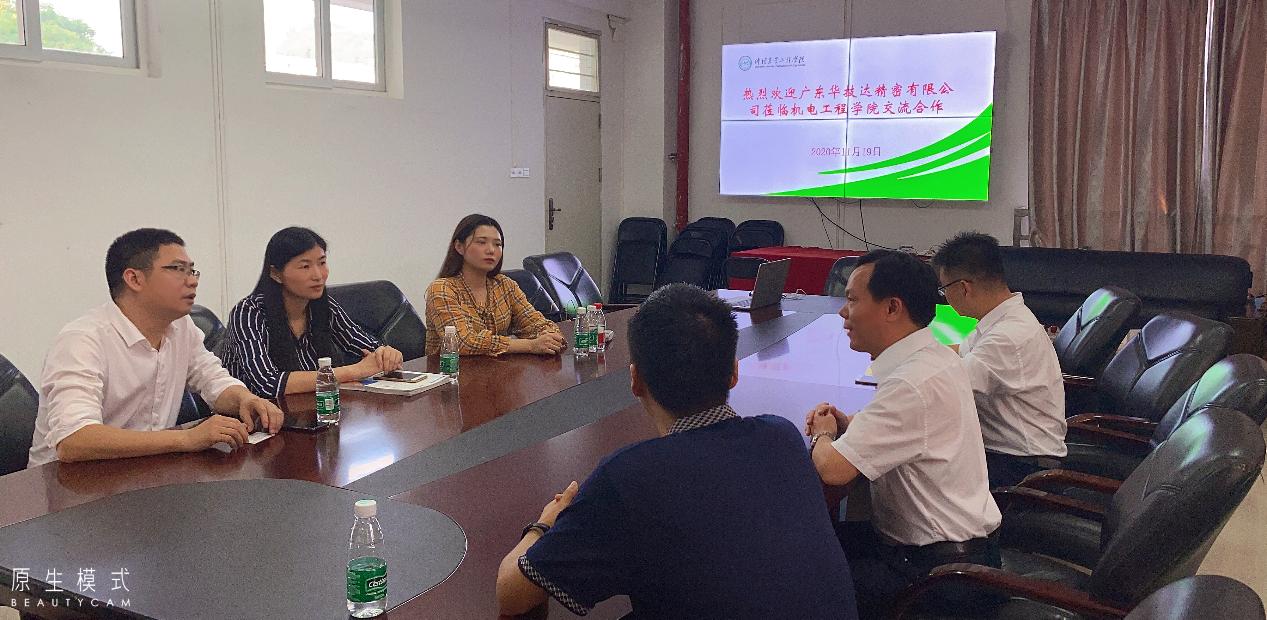 为更好地落实应用型人才培养目标,深挖企业对专业型人才的需求,寻求校企产学研合作,推动新工科人才培养方案的改革,11月19日下午,广东华技达精密机械有限公司一行人员来到机电工程学院进行调研交流。参加交流会企业一方有公司总裁特别助理、人力资源总监彭斌、人事主管余永兰、人事专员叶艳芳三人,机电工程学院党总支书记张平湖、机电系主任白振伟、辅导员郑攀与会,会议由白振伟老师主持。