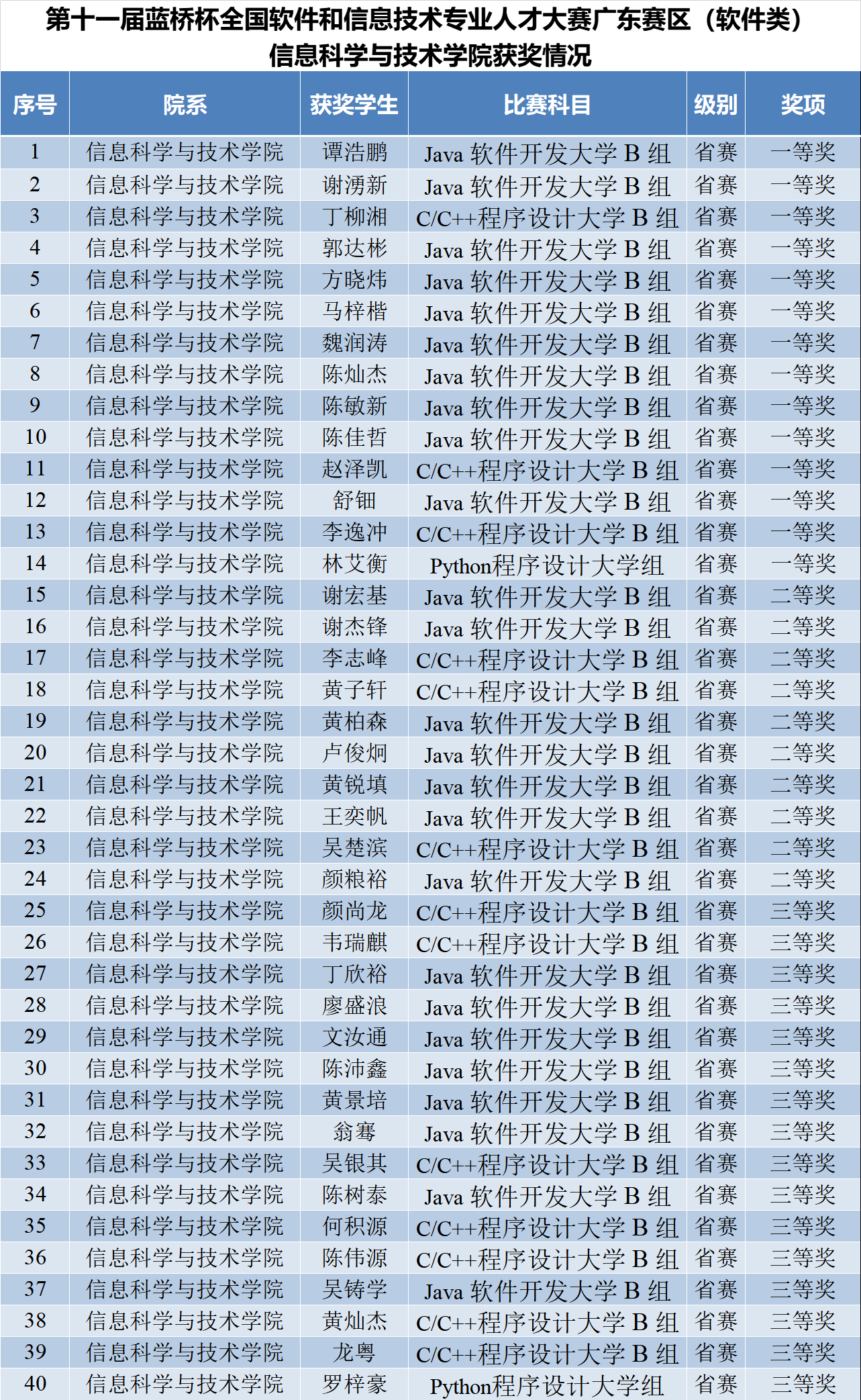 信息科学与技术学院蓝桥杯广东赛区获奖名单