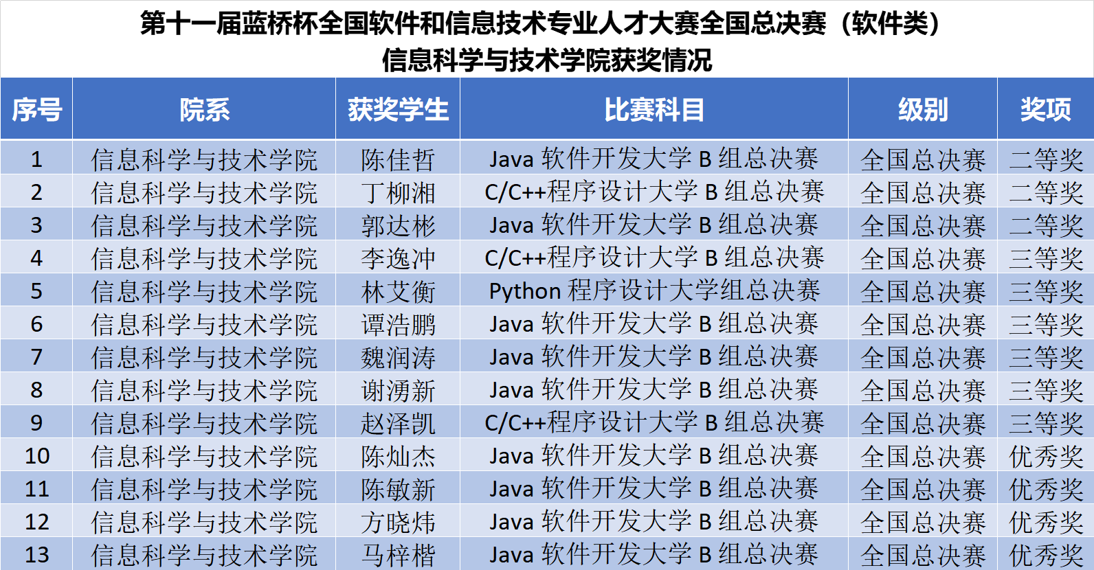 信息科学与技术学院蓝桥杯全国总决赛获奖名单