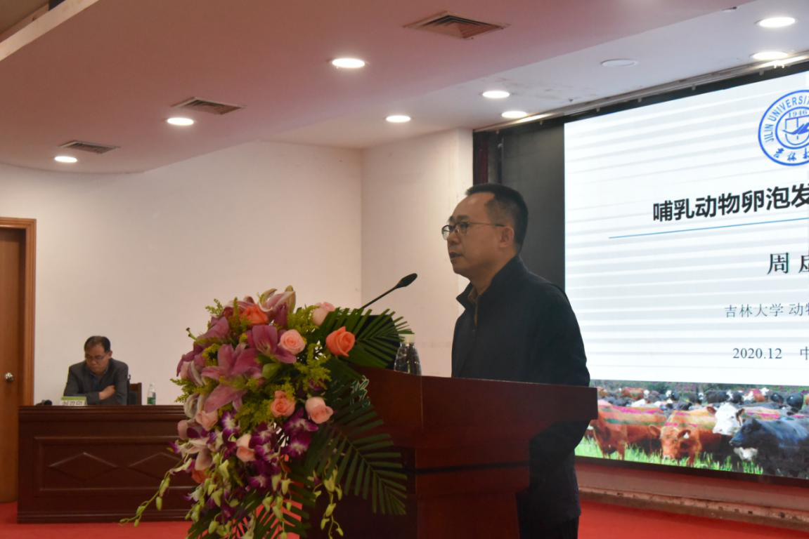本次论坛邀请中山大学莫德林教授、吉林大学周虚教授、华南农业大学聂庆华教授、广东省现代农业装备研究所孟祥宝教授级高级工程师分别作学术报告。聂庆华教授介绍了lncRNA SMUL通过无义介导的mRNA降解机制调控肌肉萎缩和肌纤维类型转换的分子机制。周虚教授就哺乳动物卵泡发育调控的国内外研究进展进行具体介绍。孟祥宝工程师围绕人工智能、区块链、云计算、大数据和5G等核心技术的智能养猪模式及技术发展趋势进行详细讲解。莫德林教授系统介绍了产肉量差异的中外猪种在胚胎早期的调控机制。本次论坛还遴选出10名研究生围绕畜禽重要生产性状的调控机制与改良、畜禽繁殖性状的调控机制、畜禽营养与免疫调控机制、新一代信息技术在养殖业的应用等领域研究热点进行了学术交流和成果与经验分享。