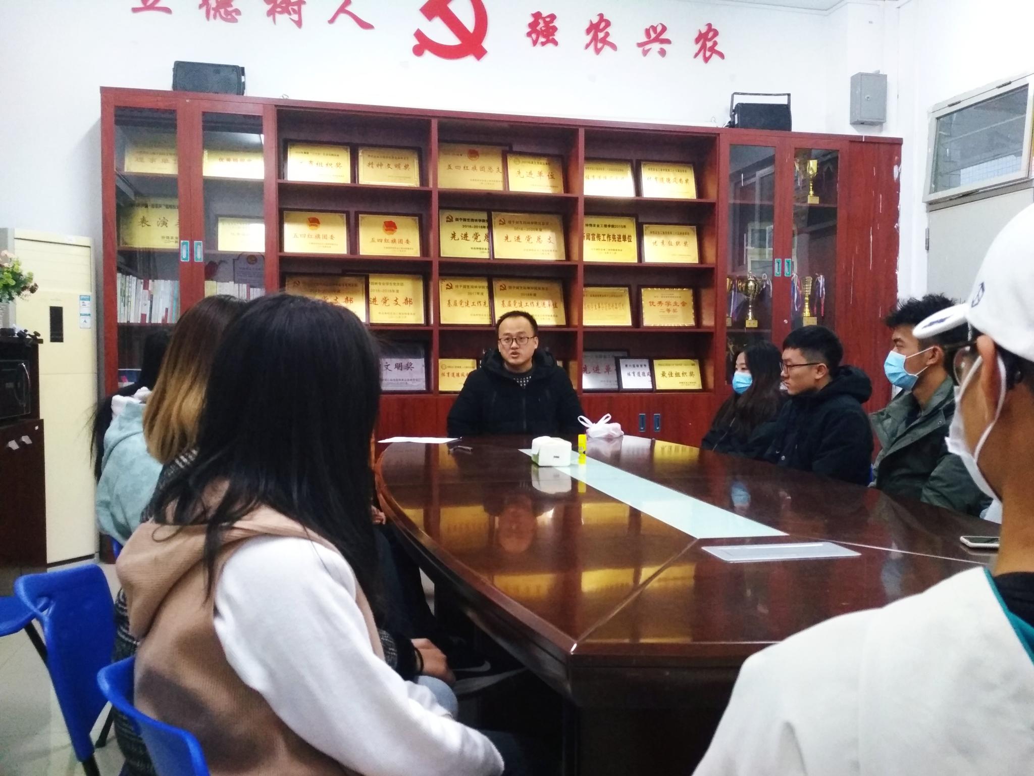 1月13日下午,园艺园林学院召开20级学生军训助班会议,我院党总支副书记石利刚、辅导员李剑峰与20级学生助班团共同参加。