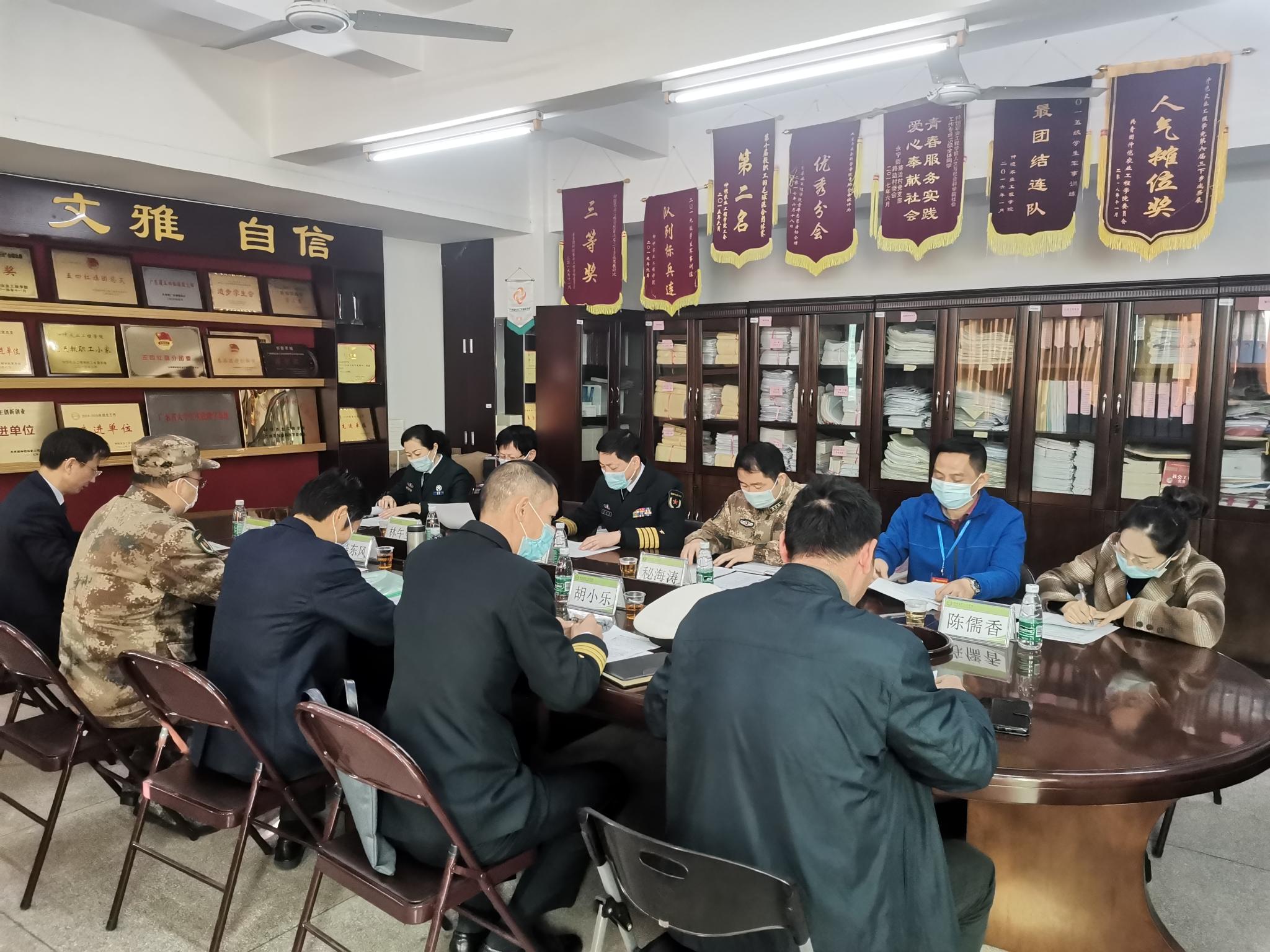 1月20日上午,广州警备区政治委员谈世国一行来我校调研国防教育与征兵工作。广州警备区动员处处长、市征兵办副主任秘海涛,海珠区委常委、区人民武装部政委聂东风,区政府副区长、区征兵领导小组副组长庄成汶,区人民武装部部长、区征兵领导小组副组长胡小乐,校人民武装部部长李伟东、副部长昌灯圣及相关工作人员参加调研座谈会。