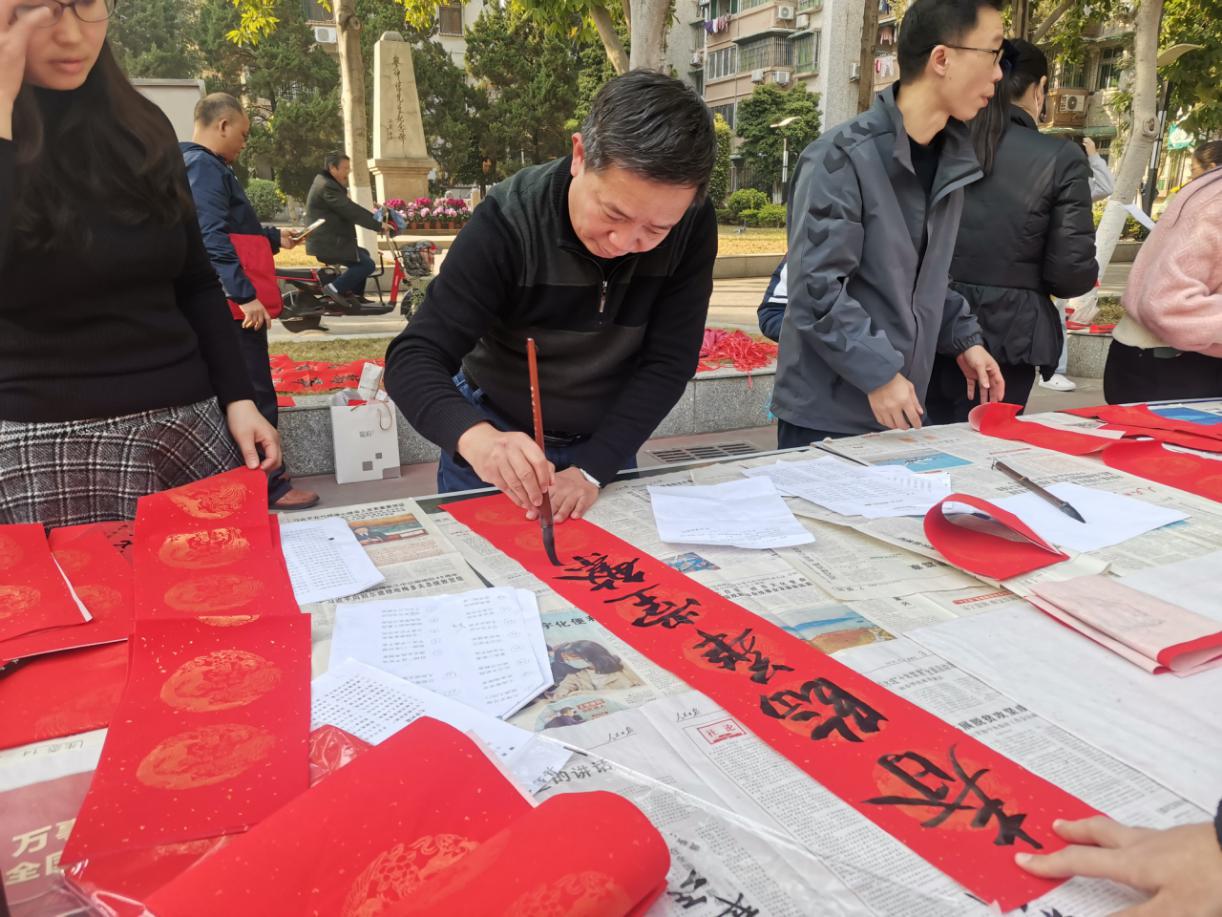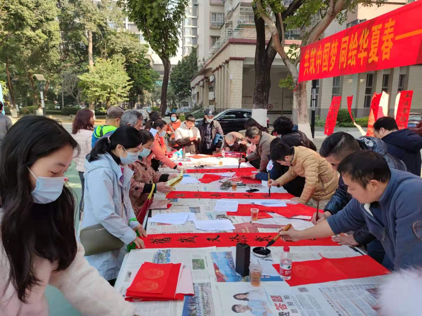 笑靥盈面迎新春,笔墨含香纳新福。妙笔生花送祥瑞,翰墨丹青献爱心。1月14日,校工会在海珠校区组织开展2021年“共筑中国梦 同绘华夏春”为主题的迎新春送春联活动。仲恺教职工书法协会和双清书画协会(学生)成员、书法爱好者现场挥毫,义务书写赠送春联送“福”字,提前为师生员工们送上了新春的祝福。活动现场暖意融融,笑语盈盈,年味浓浓,刷爆了师生员工们的朋友圈。
