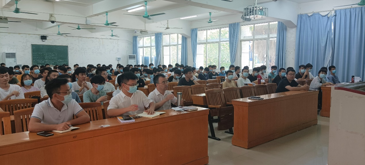 入学教育课上,张平湖首先表达了对各位新同学的祝贺与欢迎,祝贺大家通过自己的努力来到仲恺,同时也欢迎大家来到机电学院继续学习。接着,他向同学们介绍了学院的优良传统发展历史,以及丰富的办学资源和广阔的就业前景;其次,张书记对同学们提出了两点希望:一是希望同学们尽快转变角色,融入新的学习和生活环境之中。同学们不仅要在形式上入学,更要在思想上、行动上和心理上入学,全身心投入到新的学习环境中来;二是希望同学们心怀梦想,不断提升自我。通过两年的继续深造,使自己在各方面有所成长,有新的提升并不断追求新的高度。为此,张书记对同学们提出了四点要求:一是尽快完善人生规划,确定符合自己的发展定位,脚踏实地,务实进取,不断提升自己的人生高度;二是树立信心,学会学习、做人和处事,发挥自身的主观能动性,不断创造自身的价值;三是发扬工匠精神,打好自己的专业基础,在自己的专业领域和工作岗位上精耕细作;四是坚定理想信念,厚植爱国主义情怀。他要求同学们牢记习总书记对青年大学生的寄语。牢记实现中华民族伟大复兴的中国梦,需要一代又一代有志青年接续奋斗;牢记以国家富强、人民幸福为己任。最后,张书记要求同学们加强自我管理,不断提高自我管理能力,学会自我调节。务必做到不触碰法律红线,守好安全底线。