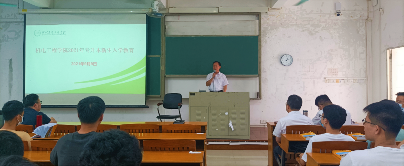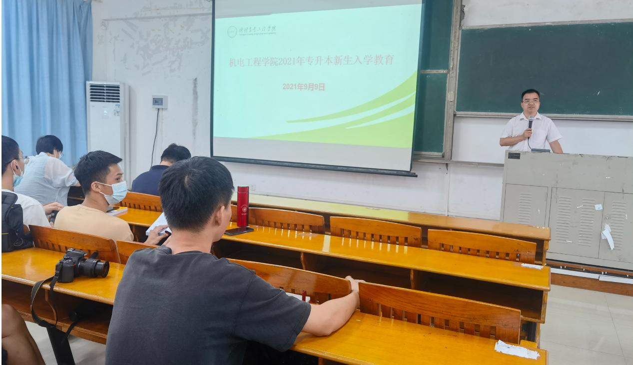 为帮助专升本新生尽快适应和融入本科阶段的学习和生活,顺利完成从专科生向本科生的角色转变,帮助同学们认识自我和树立信心,树立远大的理想目标。9月8日和9日,机电工程学院按专业分别在杨楼403和杨楼210教室开展专升本学生入学教育。学院党委书记张平湖为今年专升本202名新生上思政第一课,入学教育由学院党委副书记何宝国主持,专业系主任,辅导员以及各班班主任参加。