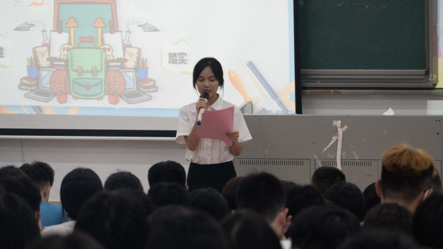 其次,由国家奖学金、国家励志奖学金获得者、优秀共产党员、仲恺五四青年奖章获得者商英183班廖创兴同学发言。他从迷茫、奋斗、失败三个角度来解读大学生活,号召新生要为目标奋斗,不负青春。