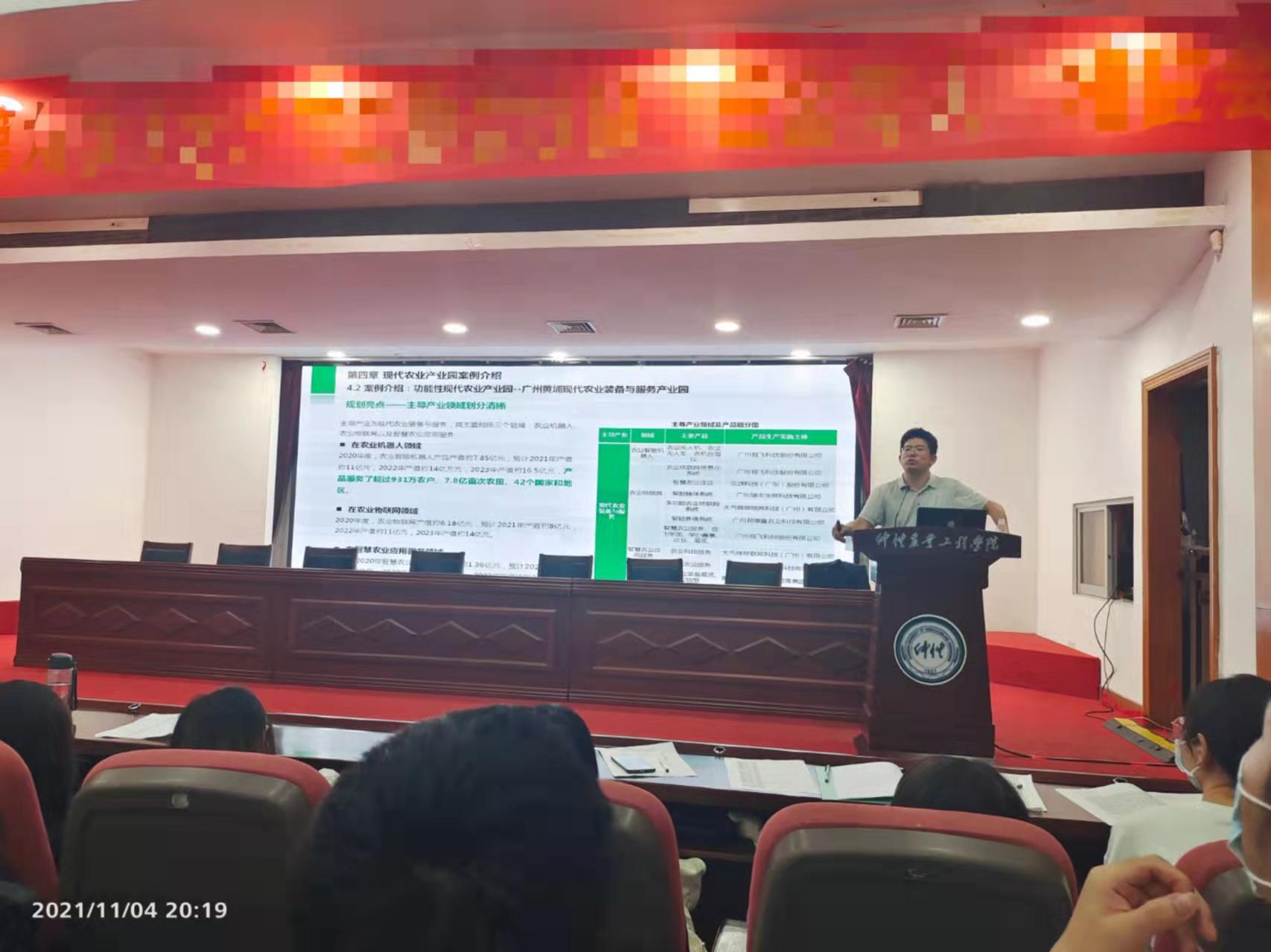 本次报告题目为《“‘百园争色’兴南粤——走进广东现代农业产业园》。首先,方凯介绍了国内外现代农业产业园的概况,现代产业园的理论基础,让与会者从理论层面理清了产业园产生的肌理。接着,方凯介绍了广东省现代农业产业园建设基本情况,各地产业园分布和发展情况。然后,方凯通过三个具体案例,向与会者展示了单一主导产业特色农业产业园、多主导产业特色农业产业园、功能性现代农业产业园的建设要求和运作流程等相关情况,阐述了如何通过发展现代农业产业园使传统农业向现代农业的转变,促进三产融合,助力乡村振兴,带动农民致富增收。最后,方凯结合现代农业产业园的发展前景与我校研究生办学特点,勉励研究生正确定位自己,在认真学习基础理论知识的同时走出校园,去深入了解广东省“三农”情况,与南粤大地上的产业园共同成长,为乡村振兴发展贡献一份力量。
