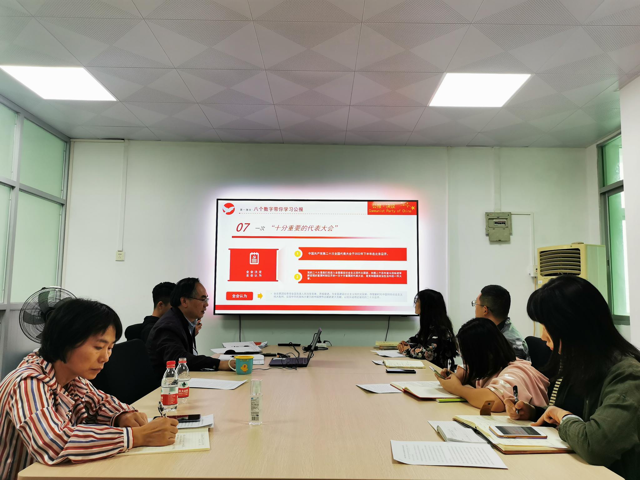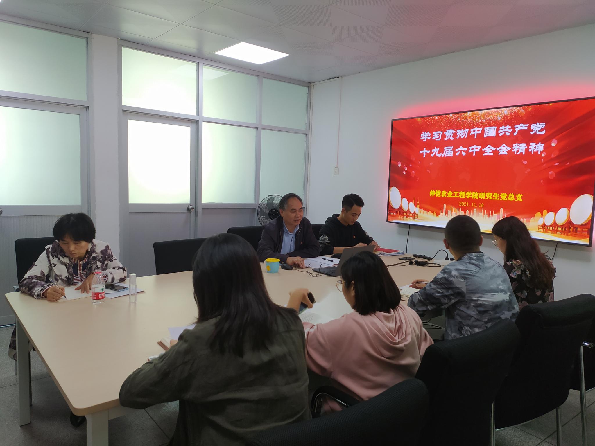 11月18月下午,党委研究生工作部(处)、研究生党总支在海珠校区教学楼513开展学习贯彻中国共产党十九届六中全会精神活动,党委研究生工作部(处)全体同志和全体研究生党支部书记、副书记参加了学习。会议由研究生党总支书记周遗品主持。