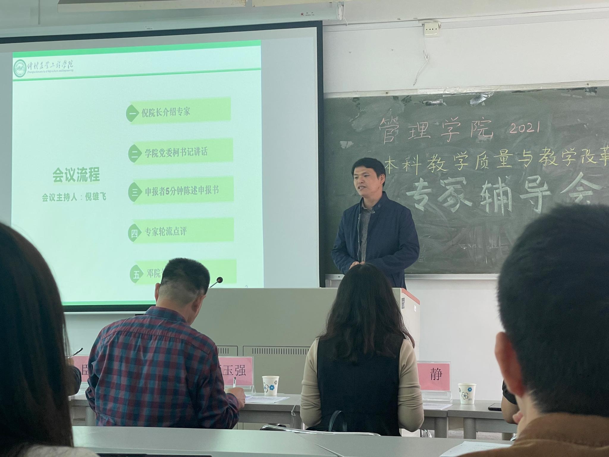 专家辅导会由倪雄飞主持。辅导会开始,柯锦泉代表学院对三位专家的到来表示热烈欢迎,并指出,管理学院学生人数高达三千四百多人,教学任务繁重,因此也突显了教学质量与教学改革工程的重要性,非常感谢三位专家在百忙之中为我们老师们的申报材料提出建设性的意见。