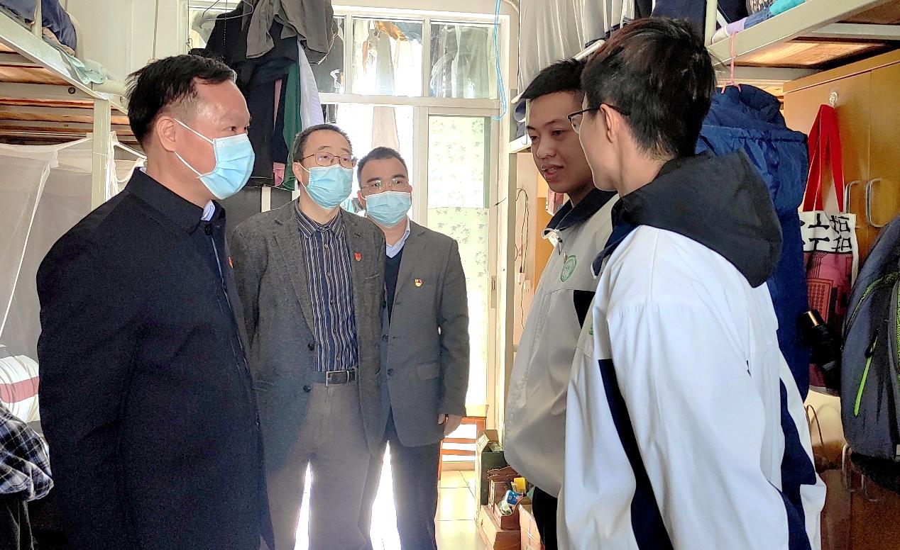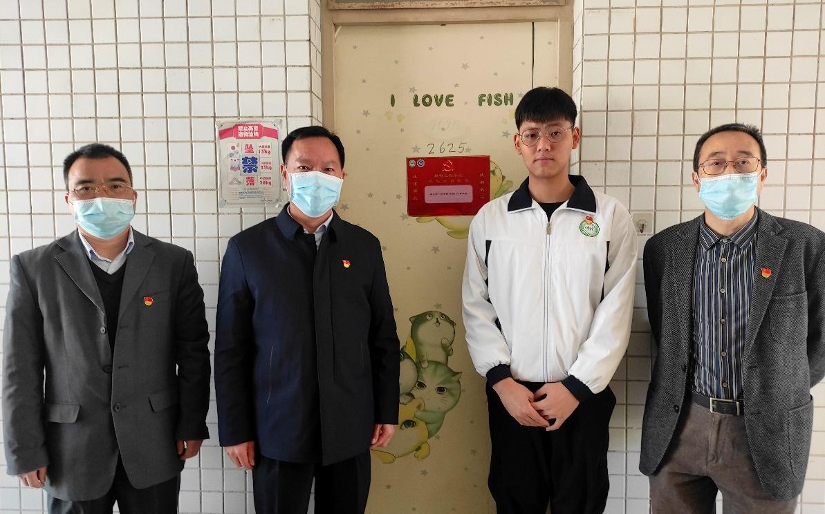 在学生党员宿舍挂牌活动现场,参加活动的各位老师为学生党员宿舍挂牌并亲切与宿舍内学生党员进行交流。张平湖指出,学生宿舍是同学们学习、生活、交流的重要场所,也是学生党员与群众联系最紧密的地方,学生党员首先应在学生宿舍“亮身份、树形象、作表率”。不仅要带领本寝室成员搞好寝室文化与学风建设,还要联系周围寝室,带领同学们一起向党组织靠拢、刻苦学习、加强锻炼、增强本领、提升思想政治水平,营造一种健康向上的寝室氛围,使寝室真正成为“和谐之家”、“文明之家”、“安全之家”和“卫生之家”。