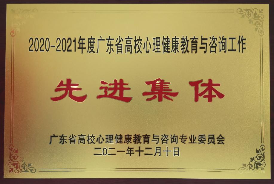 2021年12月9日至10日,广东省高校心理健康教育与咨询专业委员会学术年会在广州召开。本次大会上,我校荣获“2020-2021年度广东省高校心理健康教育与咨询工作先进集体”称号,心理健康教育与咨询中心温馨老师获得“2020-2021年度广东省高校心理健康教育与咨询工作先进个人”称号。