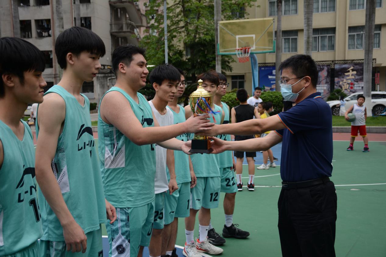 闭幕式上,史孔仕副书记为冠军队伍网络201班颁发冠军球队奖杯和奖牌、为网络201班江阳颁发MVP球员奖杯,刘勇老师为计算机201班球队颁发亚军奖杯,黎耀元老师为季军队伍得主信管192班球队颁发季军奖杯。